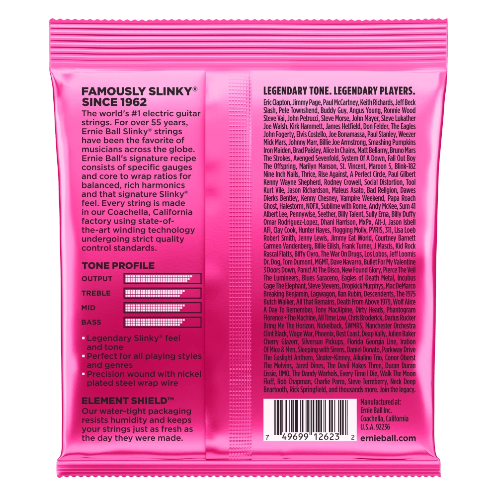 Ernie Ball Nickel Wound Electric Guitar Strings are made from nickel plated steel wire wrapped around tin plated hex shaped steel core wire. The plain strings are made of specially tempered tin plated high carbon steel producing a well balanced tone for your guitar. Gauges .009, .011, .016, .024w, .032, .042, .052