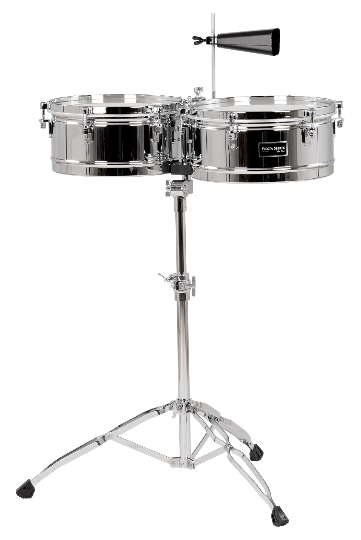 Gon Bops announces new additions to its Fiesta Timbale family. Now available in a 13โ/14โ set, new Fiesta Timbales are a chrome, top-tuning model with heavy-duty, tilting chrome stand. Smartly priced with the average percussionistโs budget in mind, they also include a bracket, cowbell and tuning wrench. The wide lug placement makes for easy cascara. This is a serious set of Timbales you can play confidently on-stage โ ideal for students, serious beginners, or road warriors on a budget.