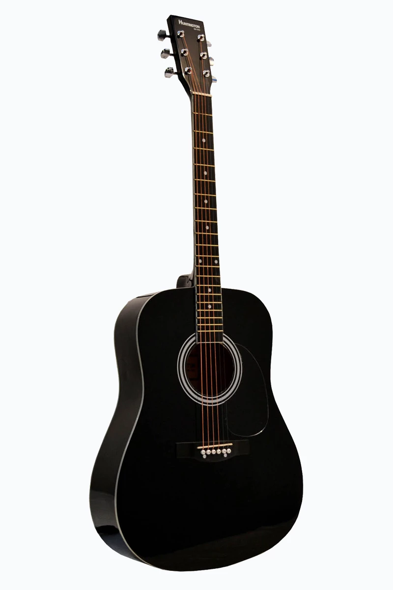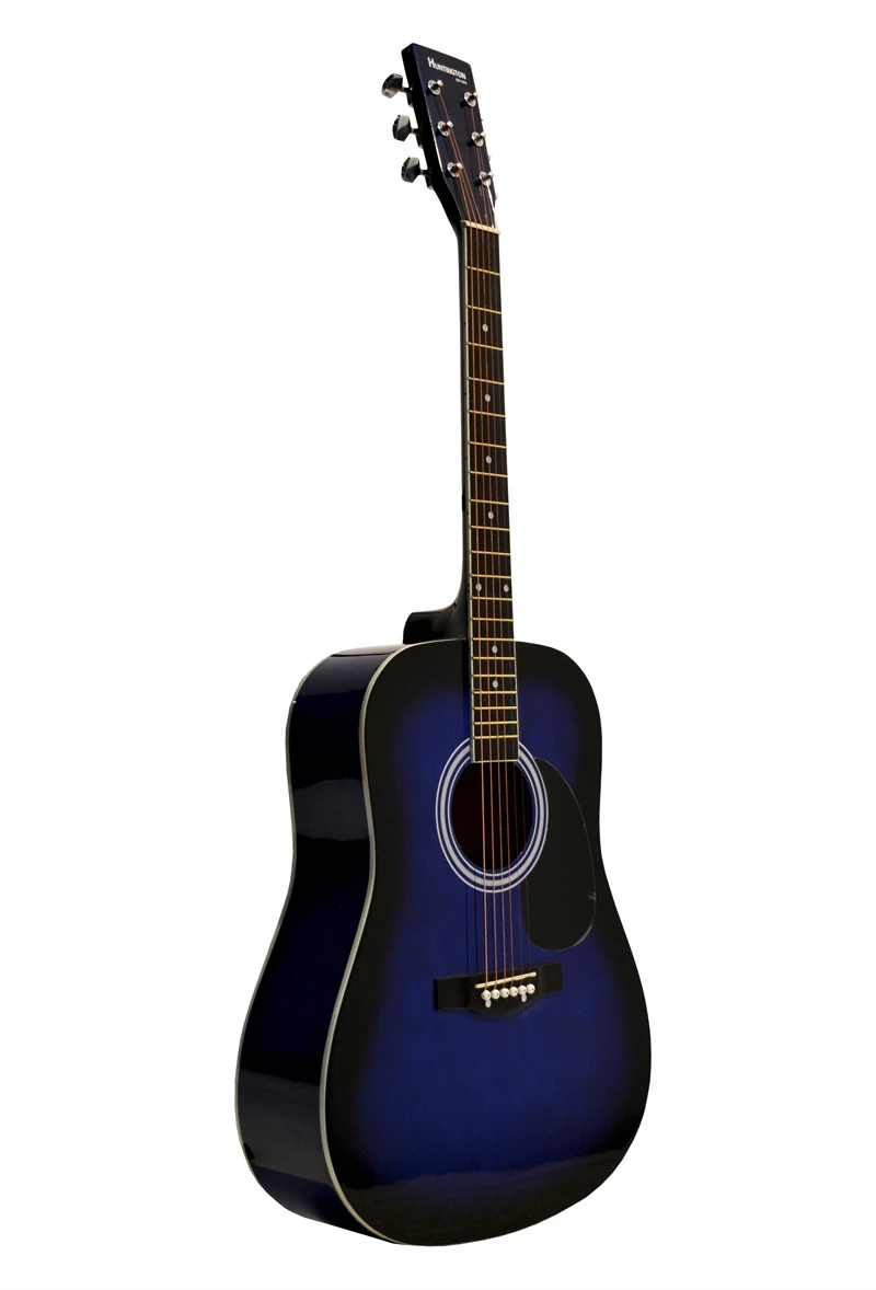 This Full Size 41″ steel string acoustic guitar is the perfect guitar for beginners and seasoned players alike, all for a super low price. A great acoustic guitar value with a traditional dreadnought style body that gives it a big, bold tone. An adjustable neck with a truss rod allows the guitar to be set up for optimum playability. Hand built using select tone woods. Gloss finish, chrome hardware, and ABS bound body and fingerboard complete its timeless look.