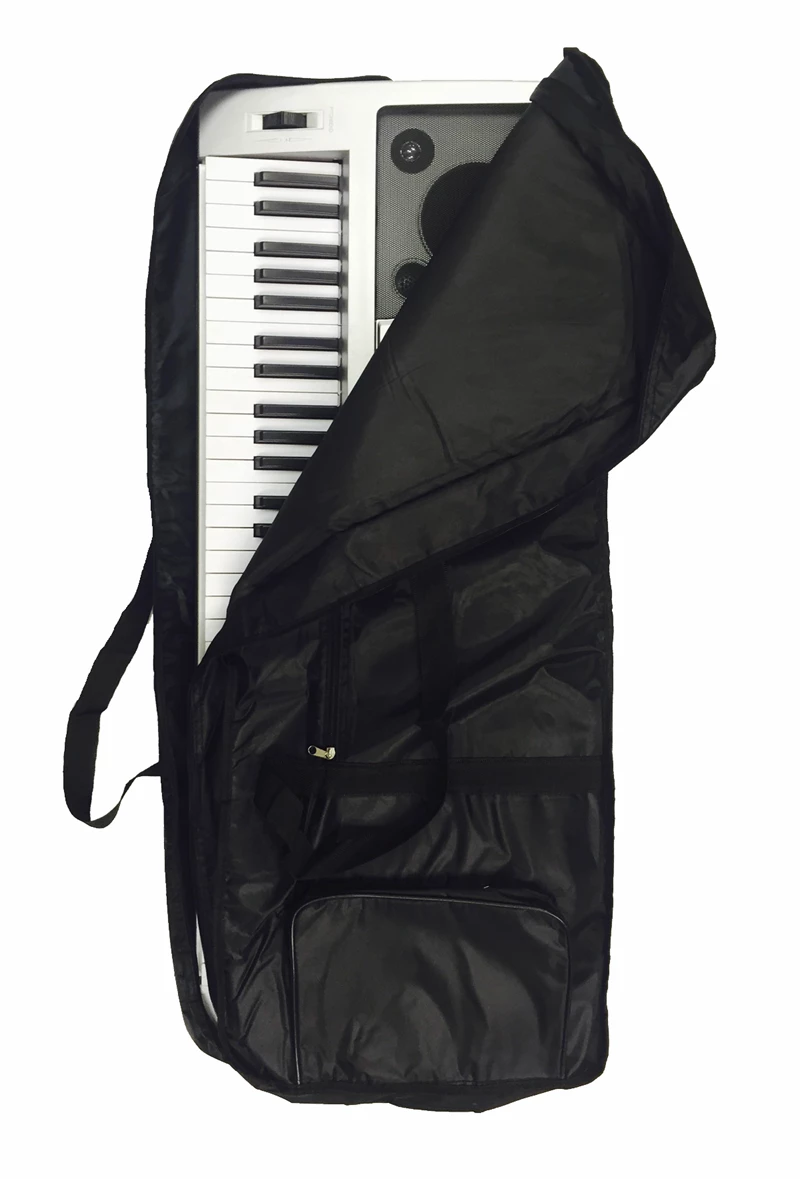 This Black Padded Nylon Portable Keyboard Gig Bagย fits 61-note boards. The electronic keyboard bag has a carry handle, two shoulder straps, accessories pocketย and a jumbo zipper.