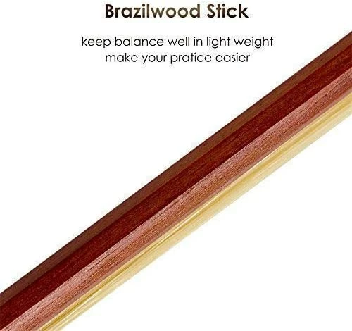 - WELL SELECTED BRAZILWOOD – The bow is Brazilwood stick, air dried more than ten years. Octagonal stick shape, great wooden bow hand feeling. 4/4 Size – approx. 71.5 cm (including the screw), 65 grams.