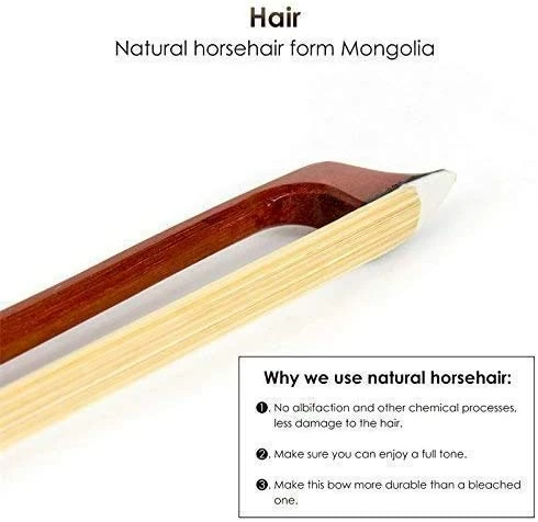- NATURAL HORSEHAIR – We use unbleached Mongolian horsehair for the bow, making it to have great resilience, be easier to rosin.