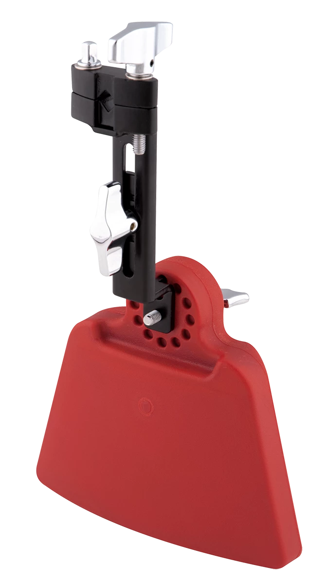 A modern take on the traditional wood block, the Gon Bops Red Bell Block is a sturdy instrument designed to hit hard and play loud! Pitch is high and bright. Includes patented Gon Bops V-Grip mount with 360-degree mounting bracket.