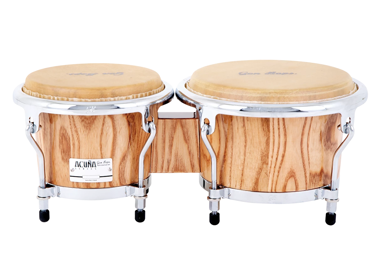 Crafted from select North American Ash, these wonderful Bongo drums offer exceptional warmth, clarity and versatility. Tight profile hardware means theyโre easier on the knees when played traditionally. Classic Gon Bops teardrop crown hoops add the legendary quality and feel of vintage Gon Bops drums, while smart, traditional welded bottom ring design eliminates cup washers for extended tuning range.