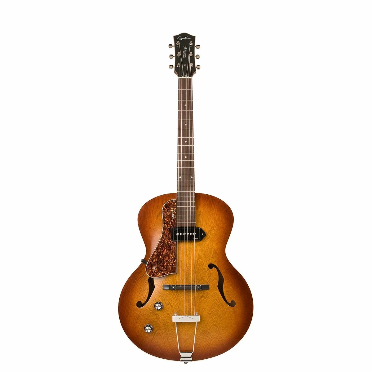 The Godin 5th Avenue brings you back to a time when the archtop acoustic guitar reigned supreme. With the soul of a 1950s archtop, the 5th Avenue is a true vintage spirit of yesterday with todayโs level of modern playability. With more projection & volume in the low/mids than traditional acoustic archtop guitars, the dynamically rich tone of the 5th Avenue makes this sophisticated instrument a dream to play but not a nightmare on your wallet. The Godin 5th Avenue now makes the dream of owning an affordable North American archtop a reality! From Alt-Country, Delta Blues, Slide, Jazz to Rock, the 5th Avenue can really deliver both acoustically and electrically. The new Godin Kingpin P90 Left single-coil pickup delivers all that classic vintage tone with presence, clarity, and a little attitude thrown in for good measure!