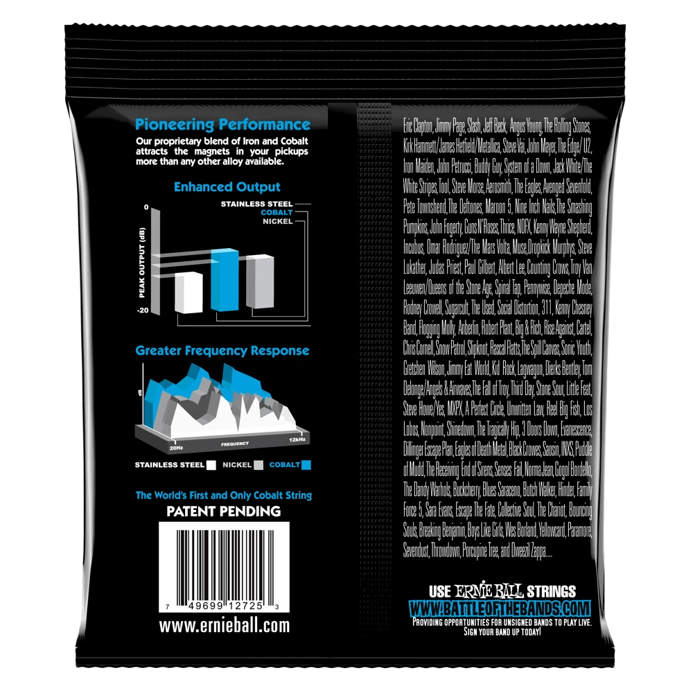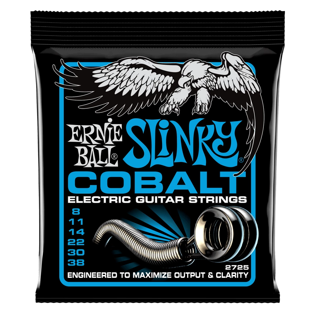 Ernie Ball Cobalt Slinky Electric Guitar Strings provide an extended dynamic range, incredible harmonic response, increased low end, and crisp, clear highs. Cobalt provides a stronger magnetic relationship between pickups and strings than any other alloy previously available. Cobalt Slinky guitar strings are also soft and silky to the touch, making string bending a breeze. Gauges .008, .011, .014, .022, .030, .038