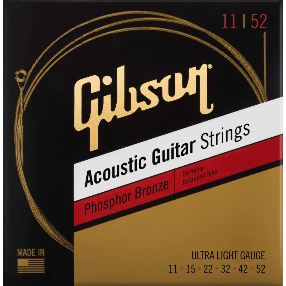 Developed under the direction of Gibsonโs Master Luthiers, these strings are phosphor bronze wound to give your guitar a bright attack and sustained warmth, providing you with the ultimate acoustic sound. Suitable for any playing style, Gibson Phosphor Bronze strings are un-coated for an authentic acoustic feel, making these a favorite for the Gibson Team in Bozeman, Montana.