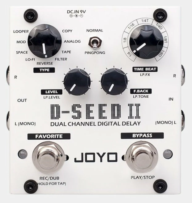 The first generation of D-SEED was well received, then JOYO gathered numerous feedbacks from customers and launched D-SEED II stereo delay, which bringing brand new algorithms, and provides 8 different delays. Various effects are listed as below: Space, LO-FI, Filter, Tape, Copy, Analog, Modulation and Reverse.