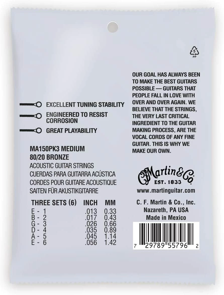 | Medium | .013 | .017 | .026 | .035 | .045 | .056 | 189.6 | MA150PK3 |
