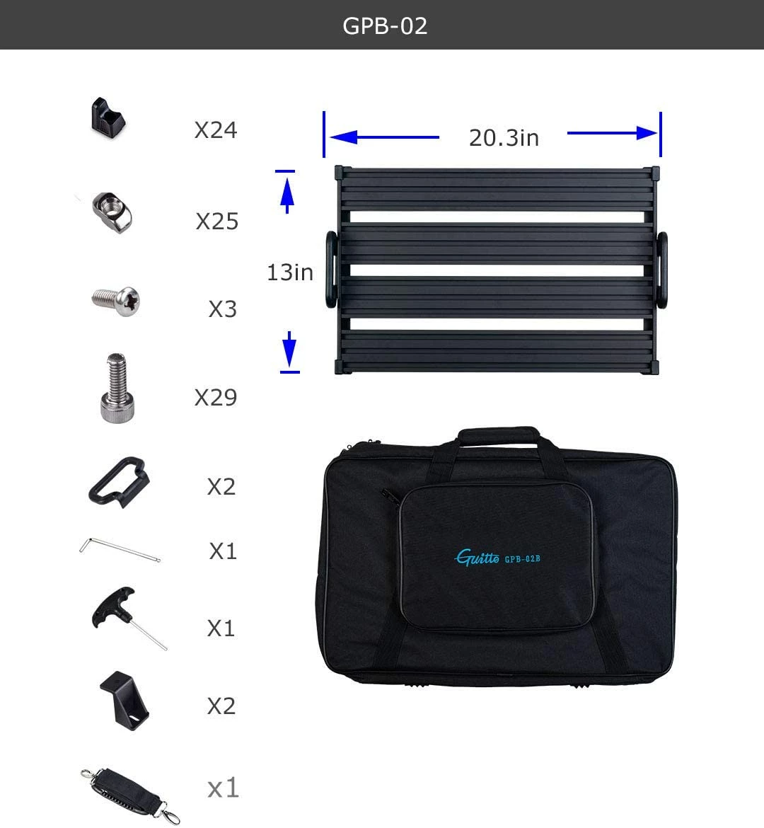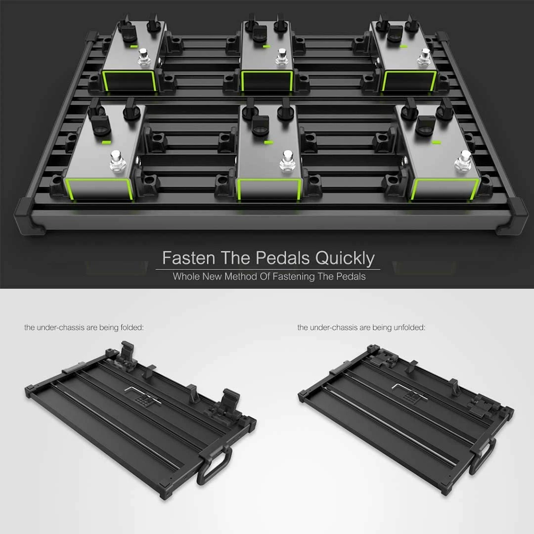GPB pedal boards are innovative, human oriented and user-friendly, can fasten different shapes of pedals. With collapsible under-chassis, space-saving and portable, perfect for guitar performance. You can fix the pedals on the pedal boards quickly with the fixture blocks. Besides, the aluminum alloy structure ensures the maximum bearing capacity and impact resistance.