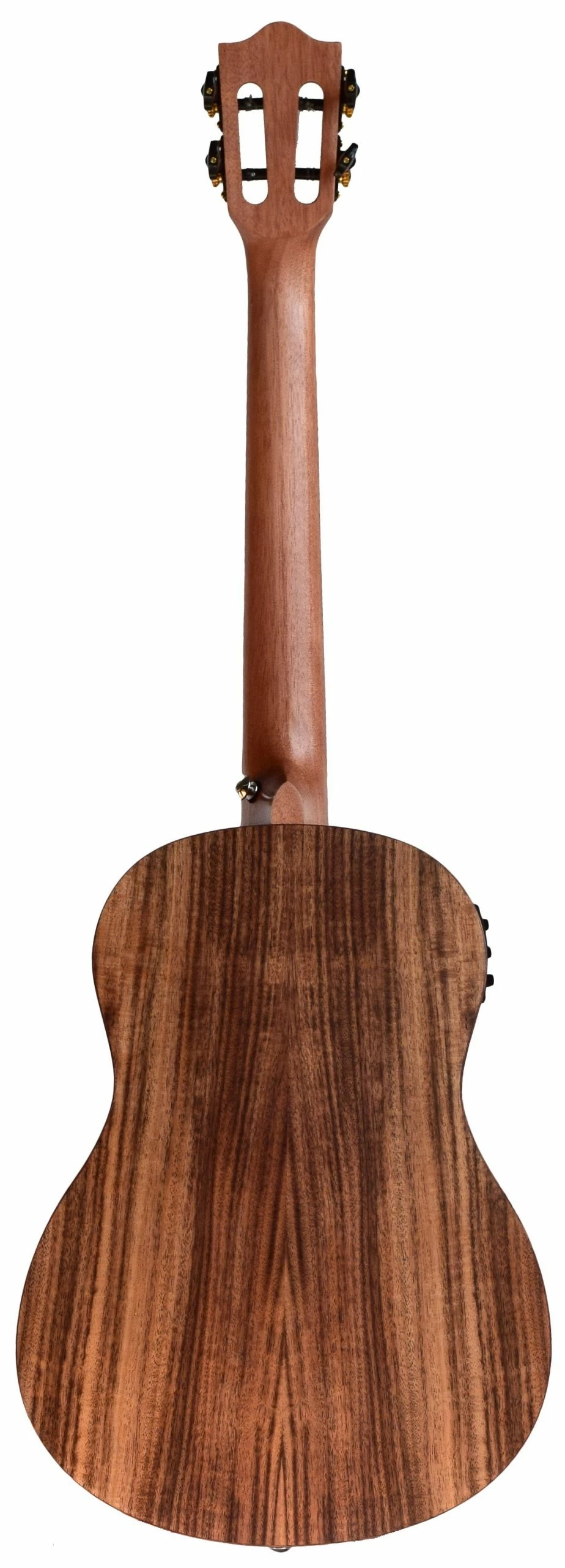 Designed for the advancing player who demands an instrument of utmost versatility and top quality. Solid Cedar Top, KOA Sides & Back. Edges are bound and the fingerboard & sound hole has an elegant inlay. Highest quality engineered precision ratio geared tuning machines turn accurately and smoothly.