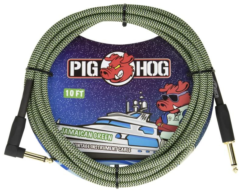 Budget ๐ŸŽ‰ Pig Hog USA PIG HOG “JAMAICAN GREEN” INSTRUMENT CABLE, 10FT RIGHT ANGLE ๐Ÿ‘
