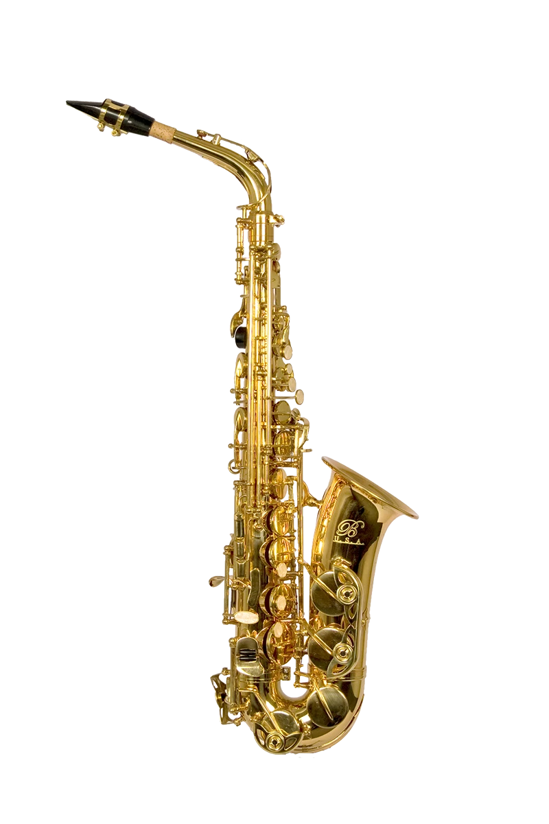 This alto saxophone is perfect for everyone, from beginner to professionals alike!ย Made out of fine metals for superior tone production, the B USA Alto Sax is the perfect instrument for starting out on the alto saxophone. The keywork, pads, and adjustment all work together to make tone production easier, more consistent, and stronger. And the bell brace and construction help make it as durable as possible. Includes case, mouthpiece, cap, and ligature.ย Contour Keys with Faux MOP Inlaysย Key of Eb High F# Keys.ย Ebonite Mouthpiece with Reed and Cap.