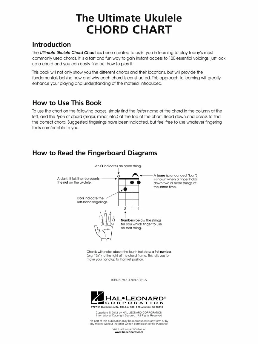 This handy booklet covers 120 of the most commonly used ukulele chords, chord theory and easy-reference diagrams. Essential for every uke player!