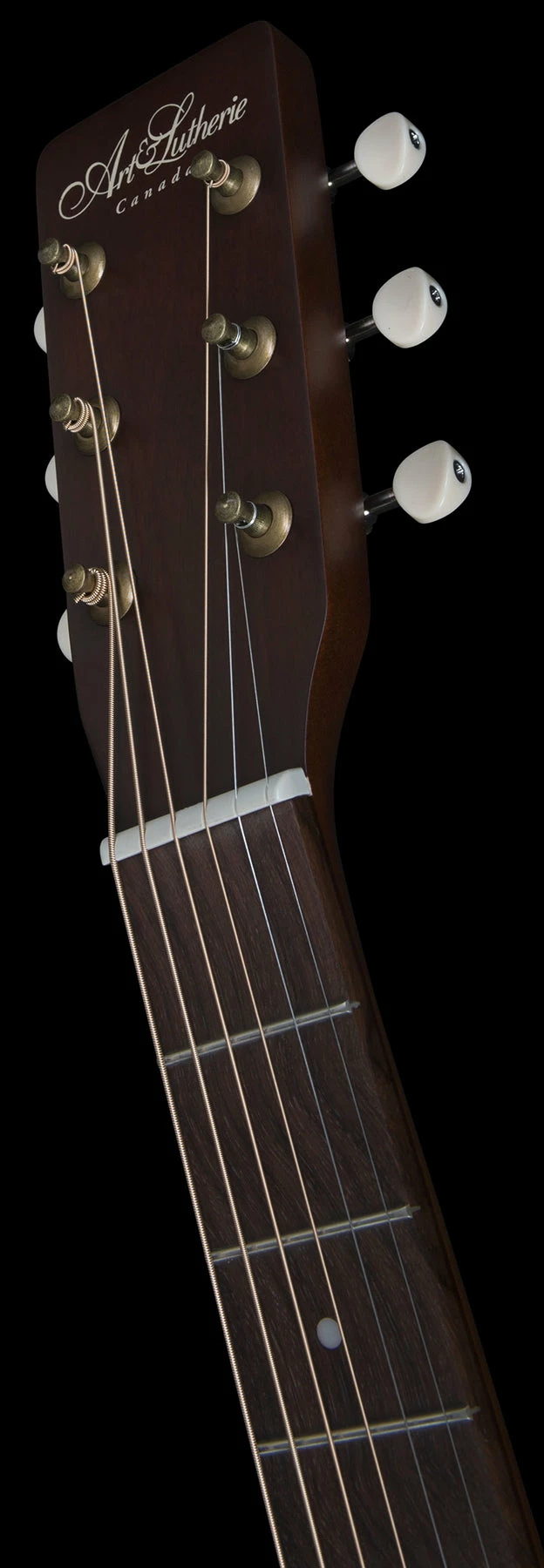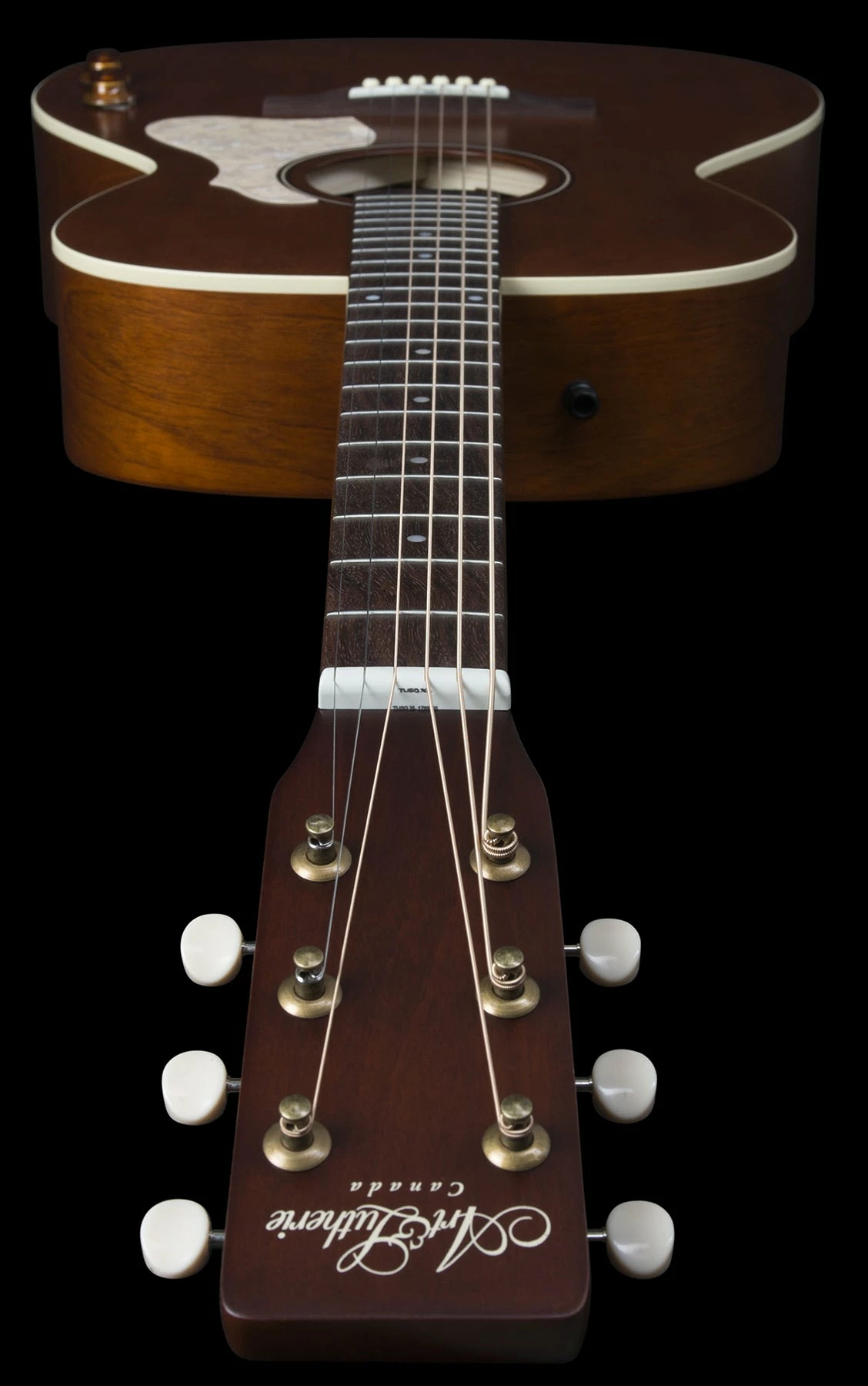- Open-gear 18:1 antique brass tuning machines