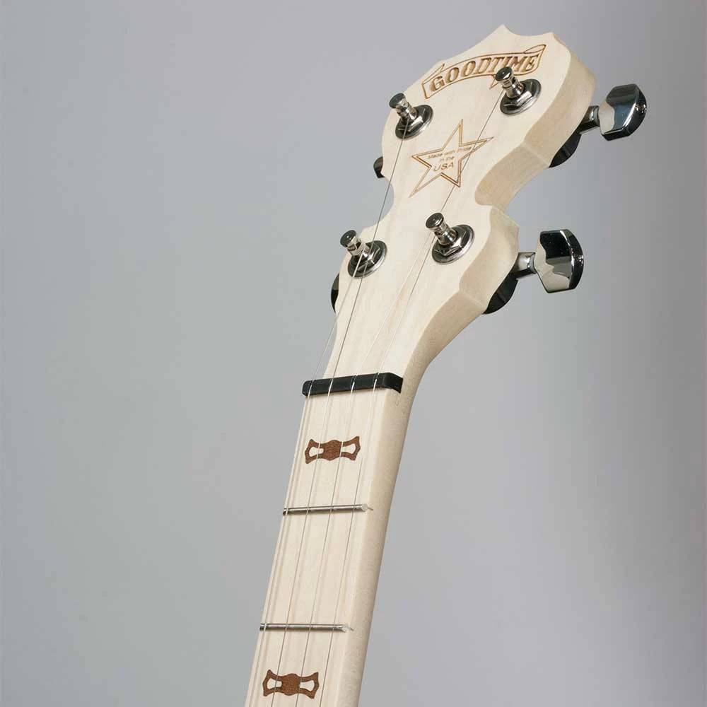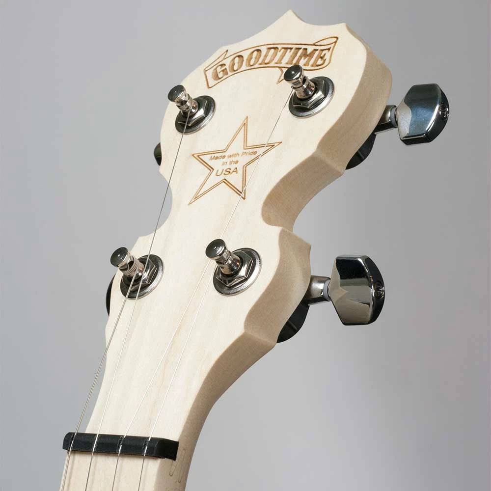 Made in America. Easy to play! Durable and easy to maintain! The Goodtime banjo produces a vibrant ringing tone from its natural finished violin grade maple rim. At only 4 pounds, the weight makes it ideal for both children and adults to play and to travel with conveniently.