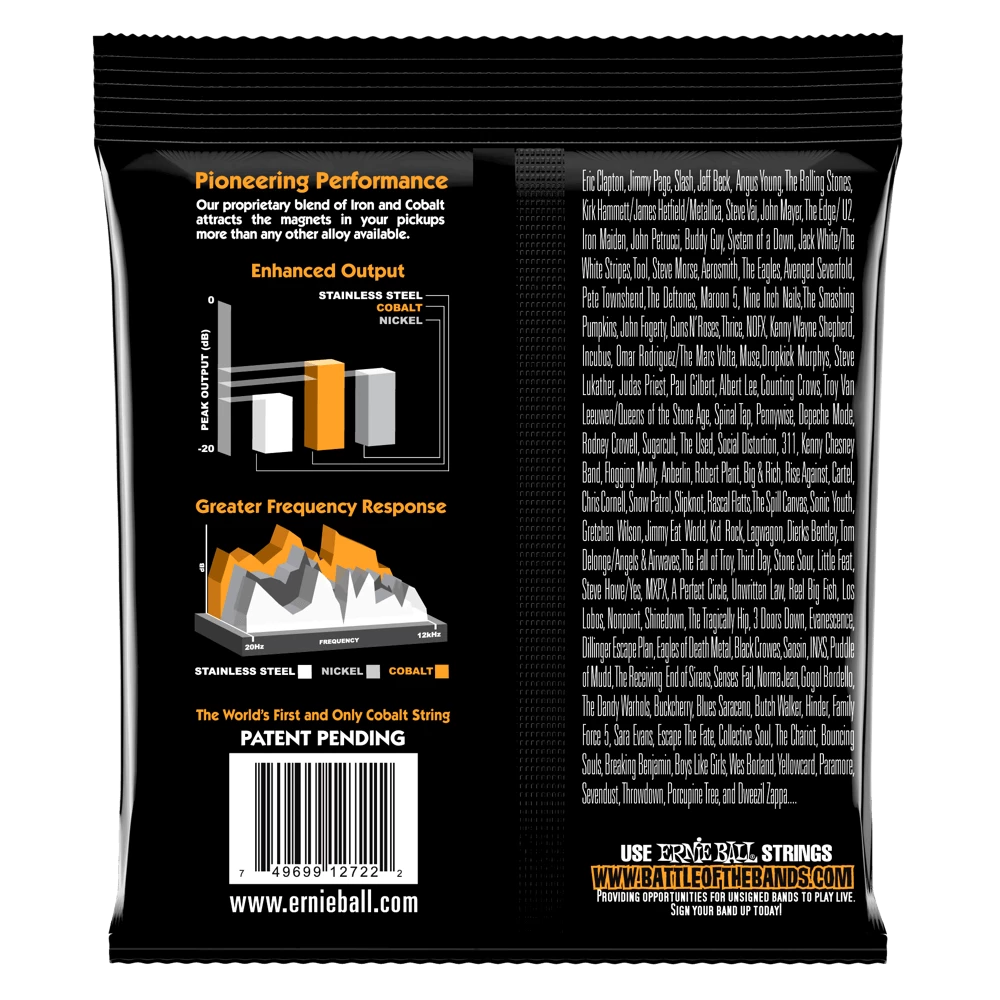 Ernie Ball Cobalt Slinky Electric Guitar Strings provide an extended dynamic range, incredible harmonic response, increased low end, and crisp, clear highs. Cobalt provides a stronger magnetic relationship between pickups and strings than any other alloy previously available. Cobalt Slinky guitar strings are also soft and silky to the touch, making string bending a breeze. Gauges .009, .011, .016, .026, .036, .046