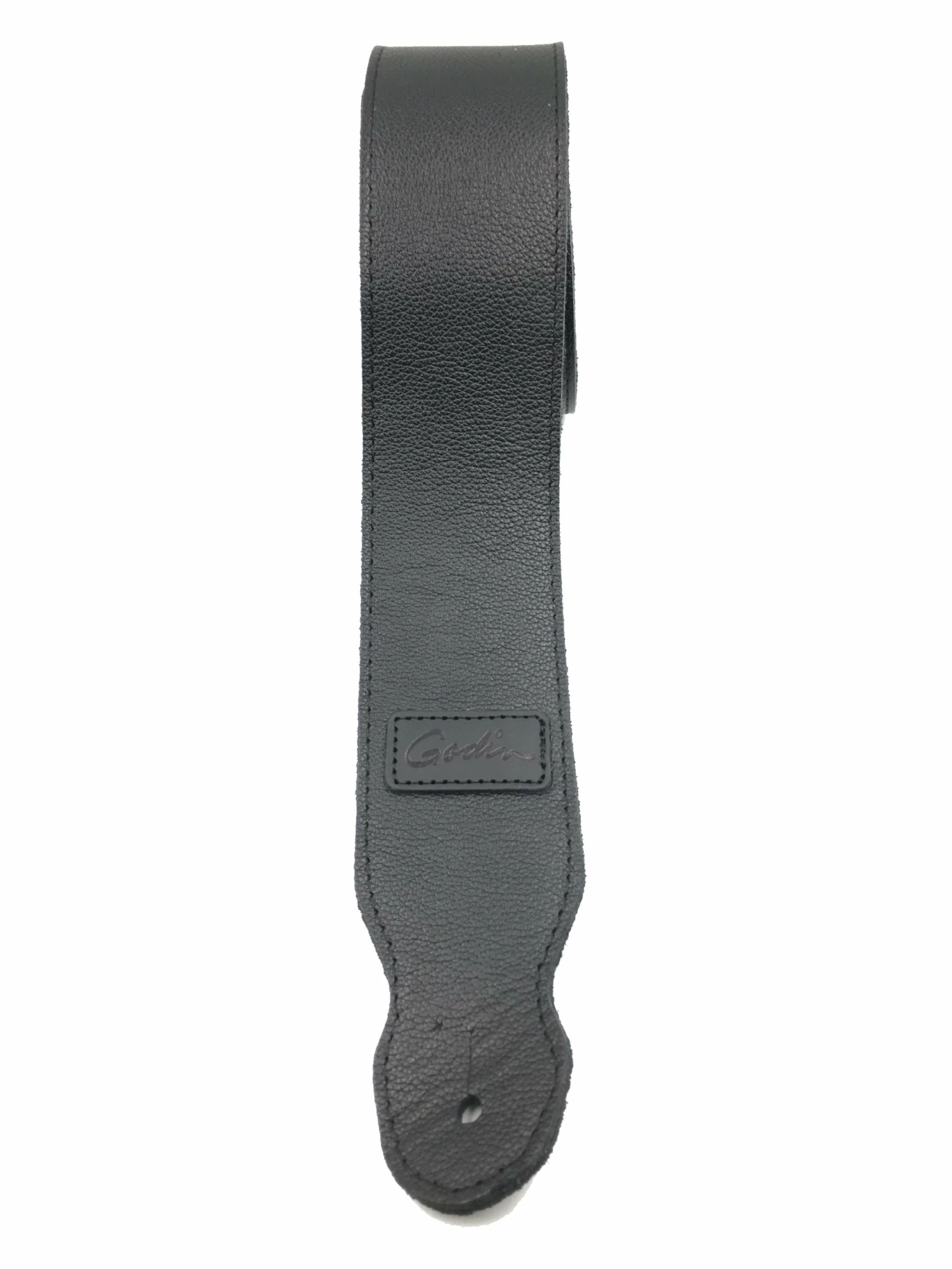 This Godin guitar strap with embossed Godin logo features the comfort and quality of its durable premium stitched black leather strap.