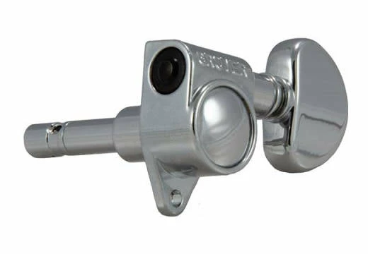 The introduction of the new Grover Locking Rotomatics gives you the ease of use provided by a standard tuner and the positive locking of our internal cam post. Simply insert the string through the string hole, pull to tension by hand and begin tuning. As you start to tune, only the locking cam in the string post turns. Once the string is locked, the string post begins to turn allowing you to bring the string to pitch. In less than one revolution of the string post, you will be in tune, to stay in tune.