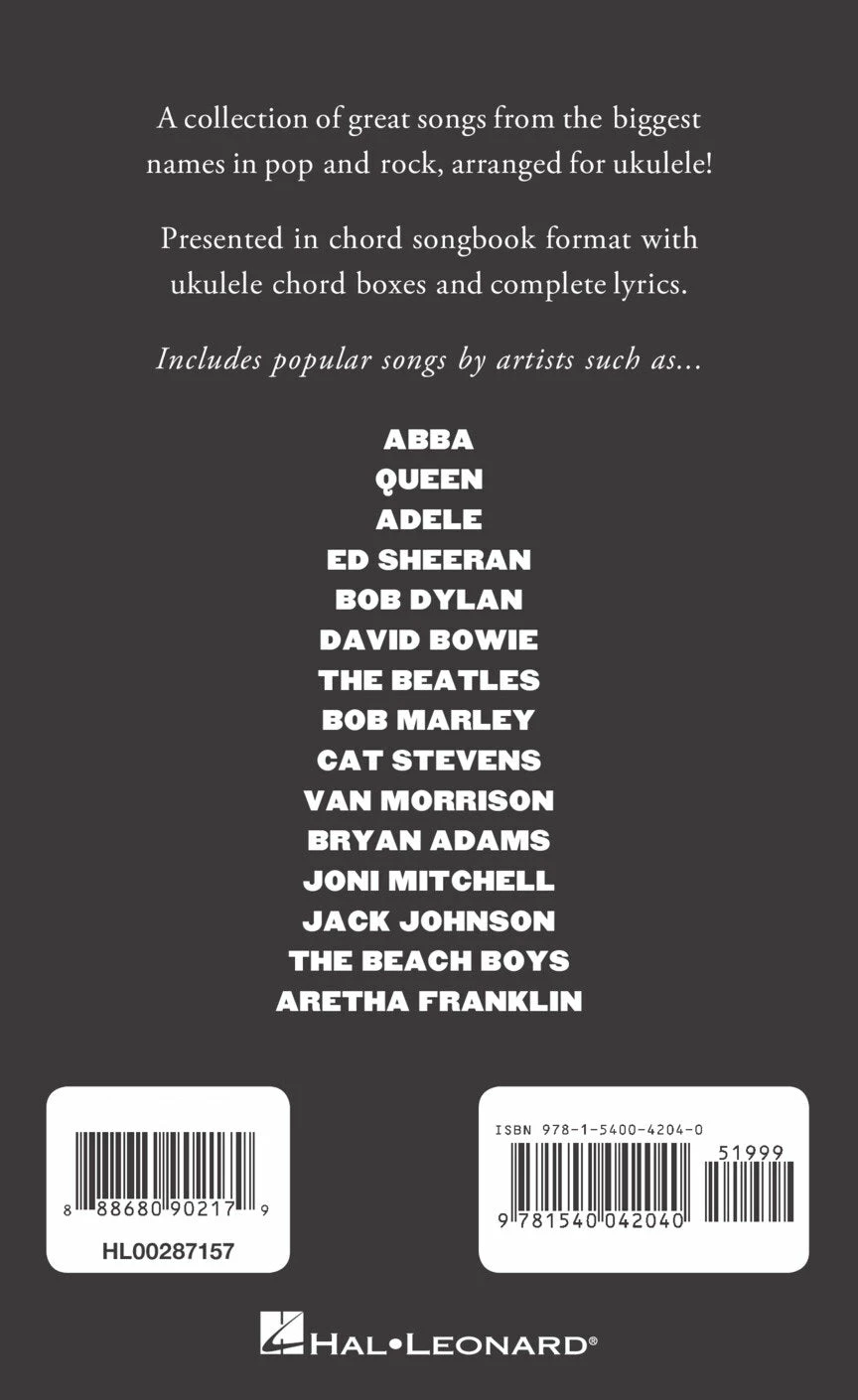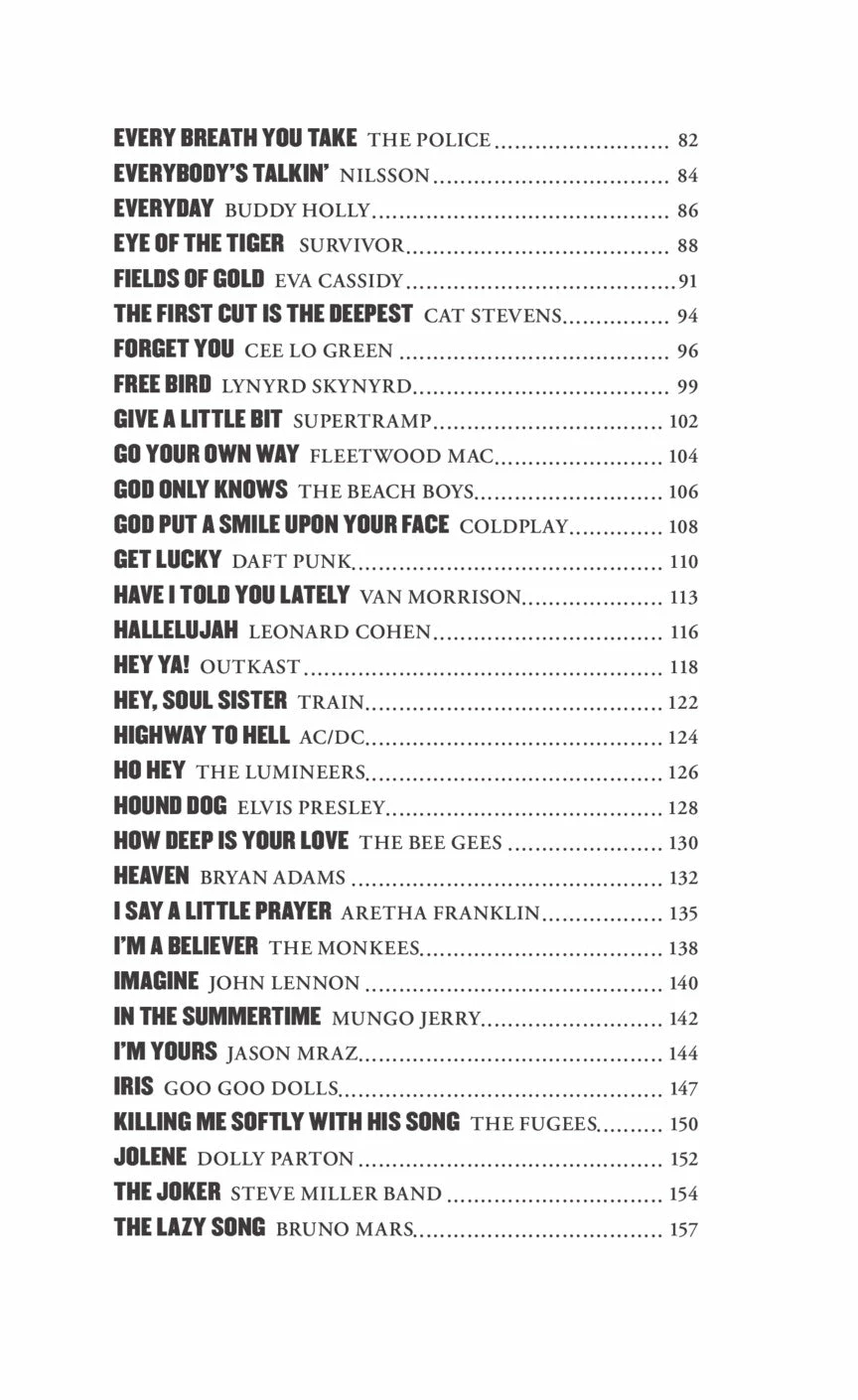 The Little Black Songbooks are popular collections featuring complete lyrics with chords in a convenient 4-5/8โณ x 7-1/2โณ size with a durable, spill-proof cover. Perfect to take on the road, whether you’re headed to a gig or a camp fire! This ukulele edition features over 130 titles: American Pie โข Bridge over Troubled Water โข Crazy โข Don’t Know Why โข Free Bird โข Go Your Own Way โข Hey, Soul Sister โข Imagine โข Jolene โข Let It Be โข Mmm Mmm Mmm Mmm โข Over the Rainbow โข Perfect โข Rolling in the Deep โข Somebody to Love โข Sweet Caroline โข These Boots Are Made for Walkin’ โข Unchained Melody โข Weather with You โข Yellow โข and more.