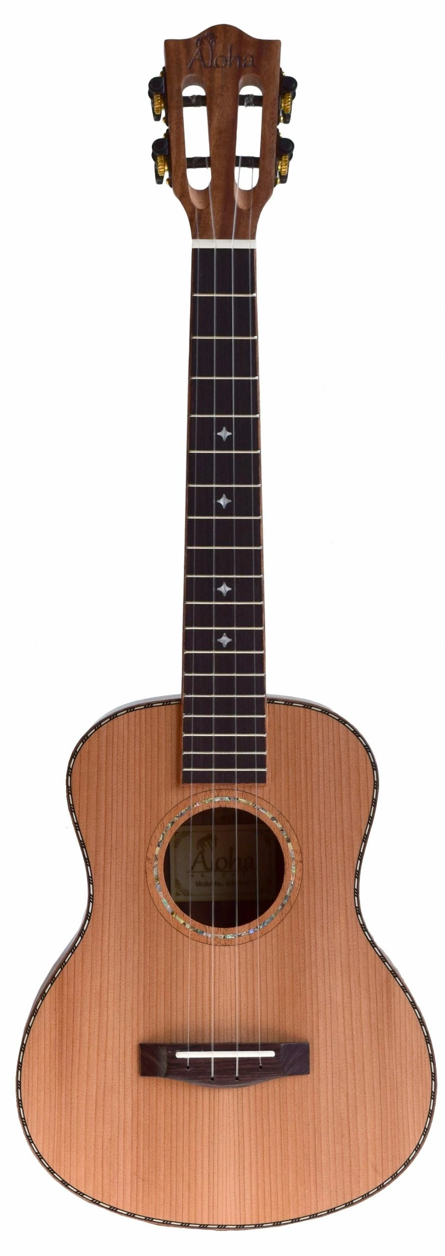 Designed for the advancing player who demands an instrument of utmost versatility and top quality. Solid Cedar Top, KOA Sides & Back. Edges are bound and the fingerboard & sound hole has an elegant inlay. Highest quality engineered precision ratio geared tuning machines turn accurately and smoothly.