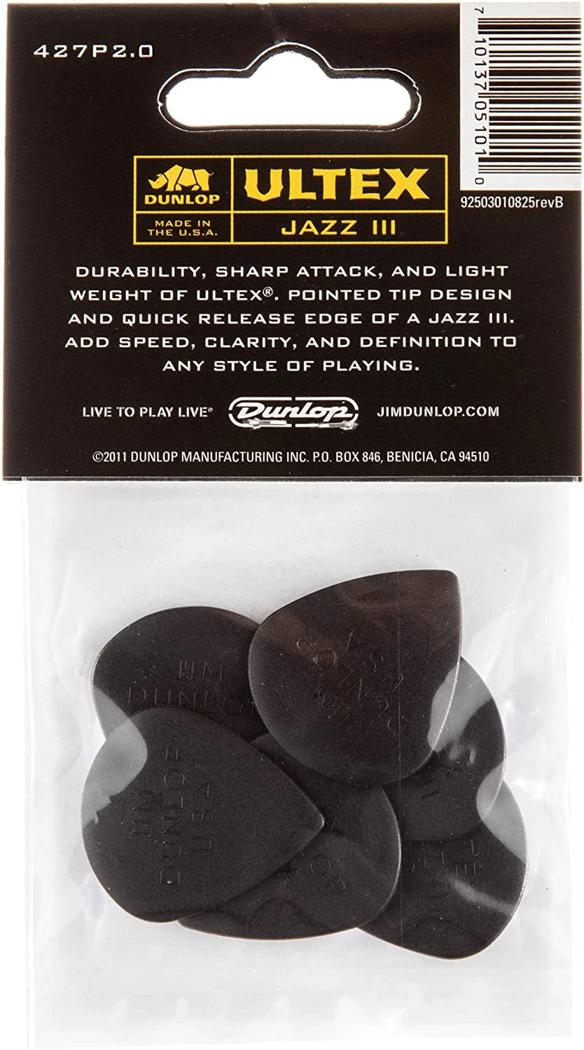Dunlop 4272.0 Ultex The Ultex Jazz III 2.0 gives you the durability, sharp attack, and light weight of Ultex with a newly-designed hybrid Jazz III sculpted tip. Ultex serves up an incredibly wide dynamic range and will add speed, clarity, and definition to your picking.