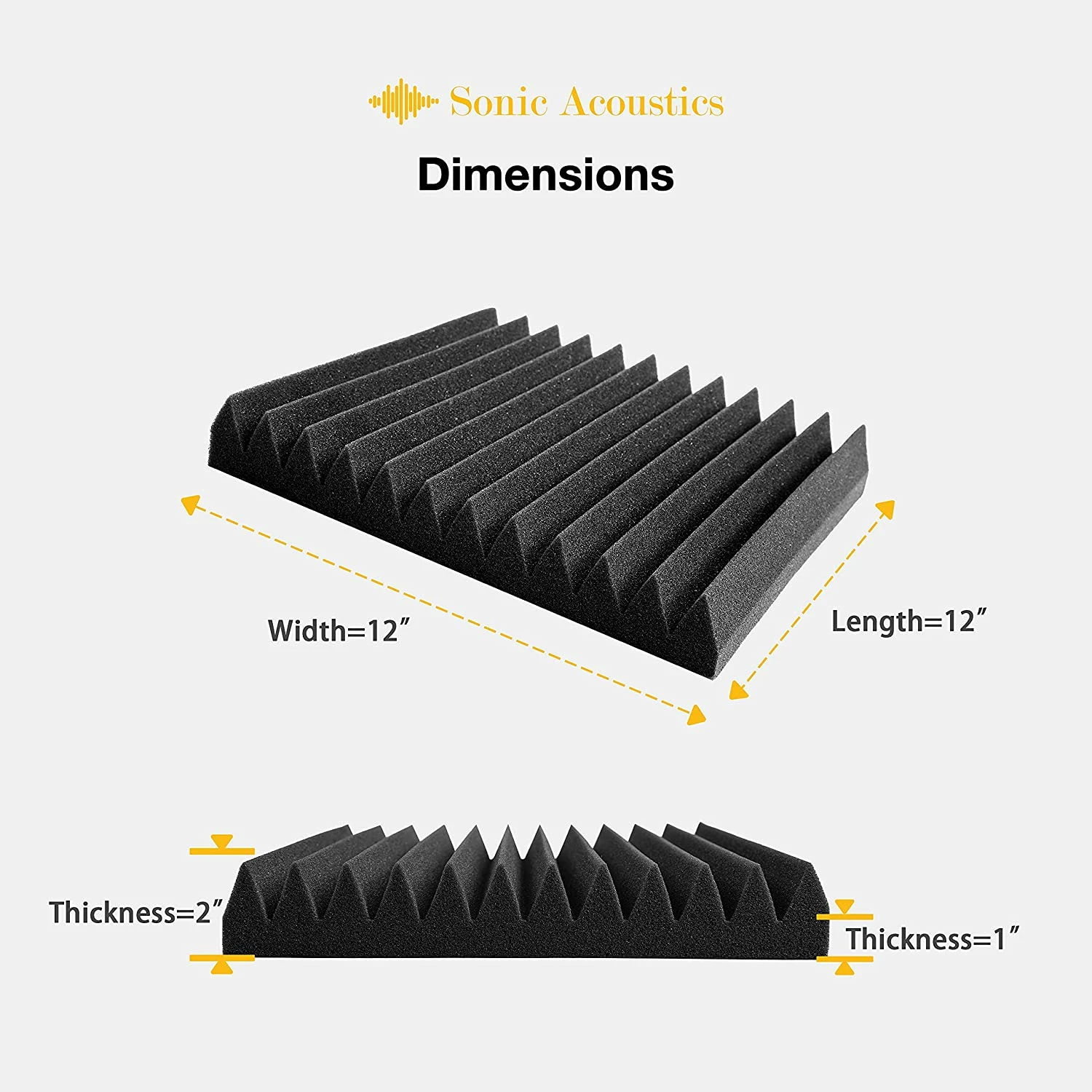 - Suitable Size: This soundproofing panels package including 6 pack, each tile is 1 square foot of 2 inch thick acoustic wedge, 6 pack covers an area of 6 square feet.
