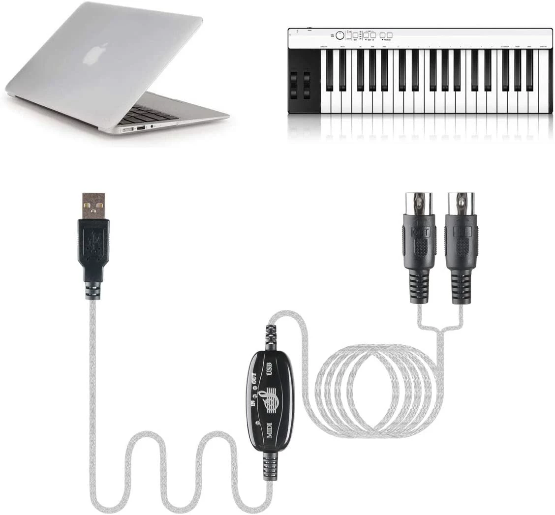 - Easy to install adapter features MIDI in and out cables along with USB PC interface plug | Please Note: Some setups will require both MIDI plugs to be plugged in for use