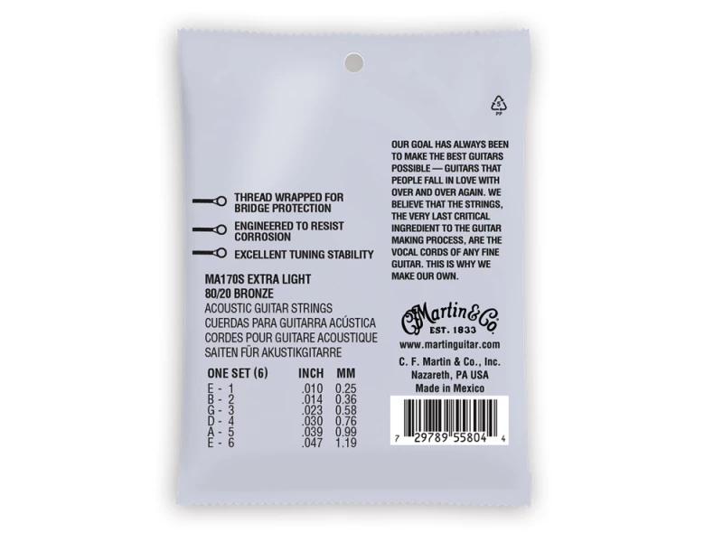 Martin® Authentic Acoustic® Marquis® Silked strings feature a soft silk wrap that prevents wear and tear on the bridge holes and bridge plate as you play. The added thickness also ensures that bridge pins will stay locked in place, even in older bridges with worn holes. Our impeccable standards for acoustic guitar tone are embedded in our string design and precision manufacturing process. That’s why we make our own