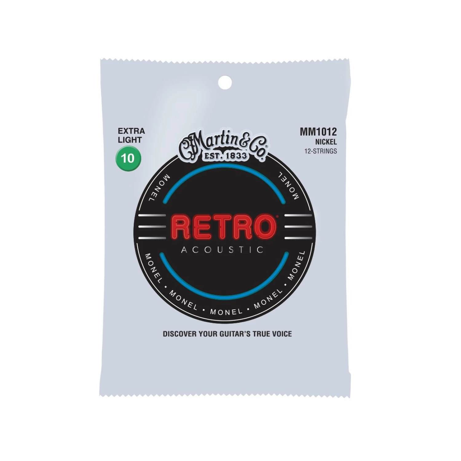Martin Retro® strings are the real deal. Not an imitation. With Martin Retro® strings, you get one tough set that offers true, consistent tone and sounds like nothing else on the market. Martin’s solid nickel/copper alloy blend provides a reduced pick attack that allows the guitar’s tonewoods to be heard, not overshadowed. Martin’s proprietary Monel wrap wire is naturally corrosion resistant, so you can play them for a long time with nothing to get in the way of your music. Discover your guitar’s true voice. Retro® strings offer enhanced longevity with warm natural tone, and they sound great plugged in.