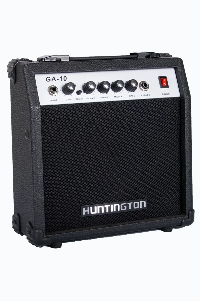 The Huntington 10 watt is the ultimate entry-level guitar amplifier and one of the best values on the market today! It features an amazing 6” solid state speaker that hammers out 10 watts with an available second channel for an extra boost along with the standard gain, volume, treble, middle, and bass controls. This amp offers an array of sounds that range from Blues to Metal. It is perfect for students or teachers as well as guitarists looking for a smaller practice amp to work with in their room or on the road!