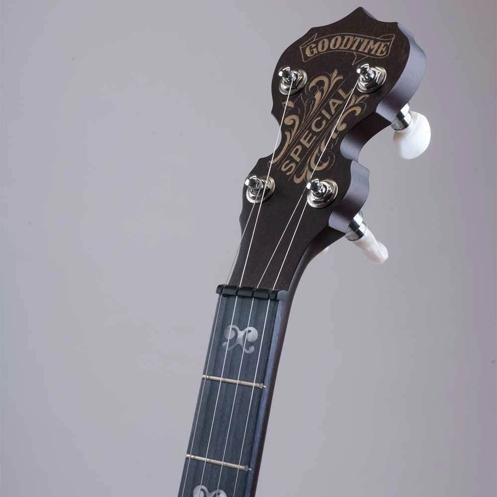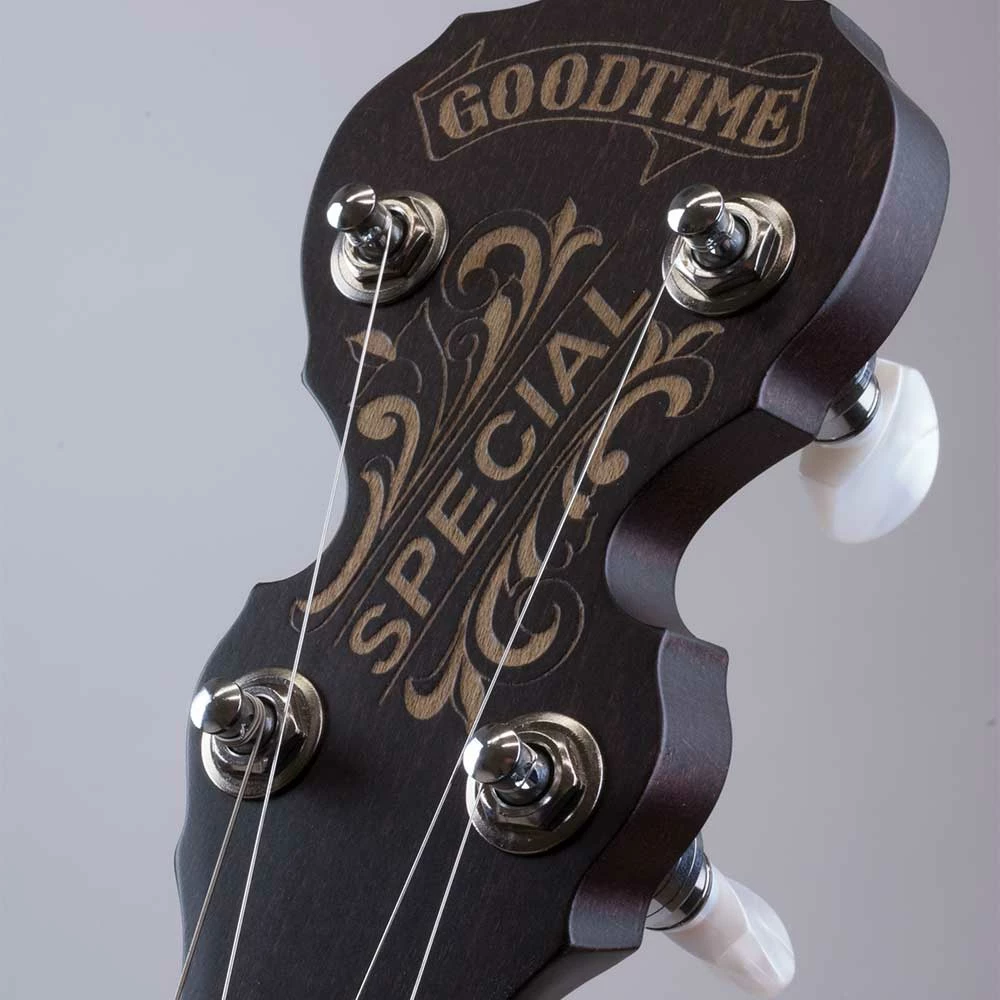 The vintage look and vibrant tone of the patented Goodtime Special tone ring set this American made banjo apart. Clearly louder than the Goodtime Two and great for playing in a band setting. Featuring Midnight Maple Fingerboard and Vintage Artisan inspired inlays! Made in America.