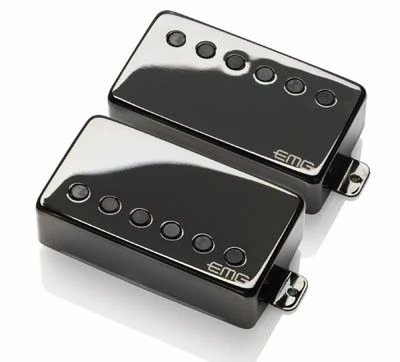 Featuring sleek black nickel plated caps and EMGs Solderless Installation System components, the JH Set consists of the JH-N (neck) and the JH-B (bridge). Both pickups were patterned after the pickups James has used for 30 years but the end result was a completely different animal. The JH-N has individual ceramic poles and bobbins that feature a larger core and are taller than the 60. This produces more attack, higher output, and fuller low end in the neck position. The JH-B uses the same type of core but has steel pole pieces, unlike the 81 that uses bar magnets. This produces the familiar tight attack with less inductance for a cleaner low end.