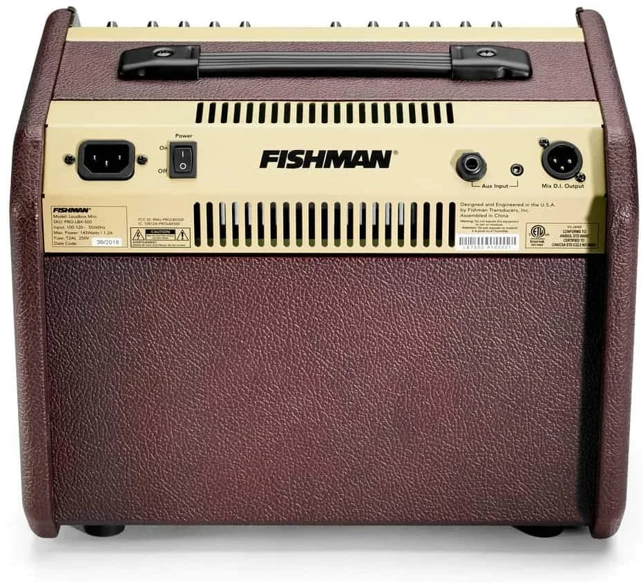 The Fishman Loudbox Mini sports the usual elegant, vintage-inspired Fishman design and is done in the classic subdued brown-and-tan motif that makes Fishman amps instantly recognizable. The front-panel display makes the controls easy to find, read, and adjust. A simple, no-frills control set means you can play relaxed and confident. When it’s time to make adjustments, the far-left Instrument channel has a Phase switch and Gain, Low, Mid, High, Reverb, and Chorus knobs that let you make those simple yet important changes to your tone and styling. Another set of Gain, Low, High, and Reverb knobs are on the Mic channel, giving you all the necessary controls to dial in a great vocal mix. Finally, a Master volume sets the ampโs overall level. Plug in, dial in, and play with the kind of rich, real acoustic tone that makes for a memorable live performance.