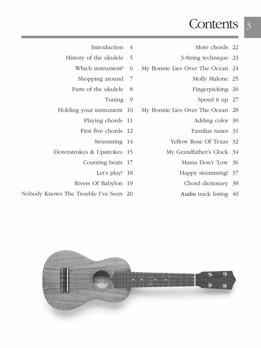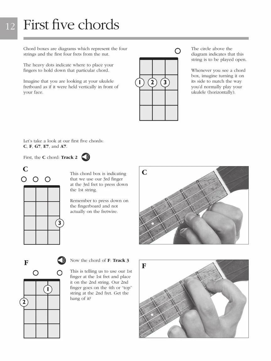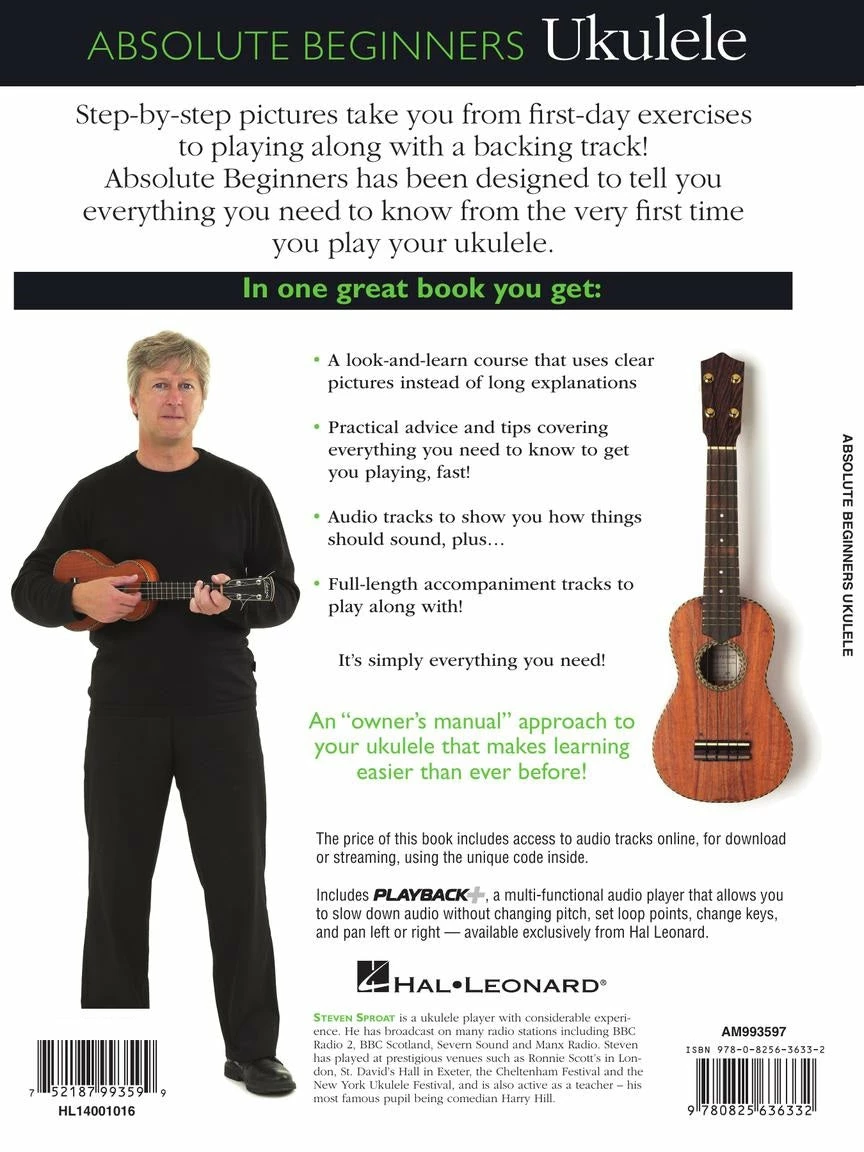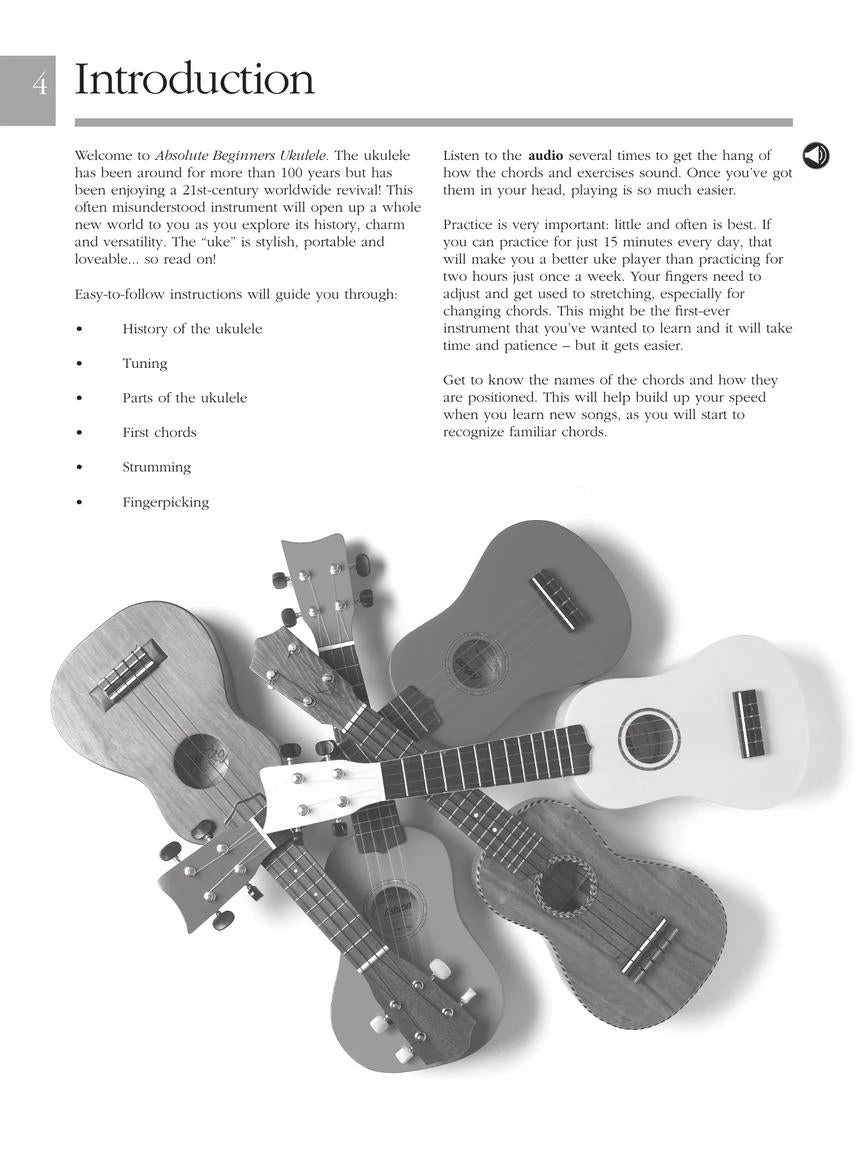 Step-by-step pictures take you from first-day exercises to playing along with a backing track! Absolute Beginners has been designed to tell you everything you need to know from the very first time you play your ukulele. In one great book you get: a look-and-learn course that uses clear pictures instead of long explanations; practical advice and tips covering everything you need to know to get you playing, fast!; audio tracks to show you how things should sound, plus full-length accompaniment tracks to play along with!; and more. It’s simply everything you need! An owner’s manual approach to your ukulele that makes learning easier than ever before!
