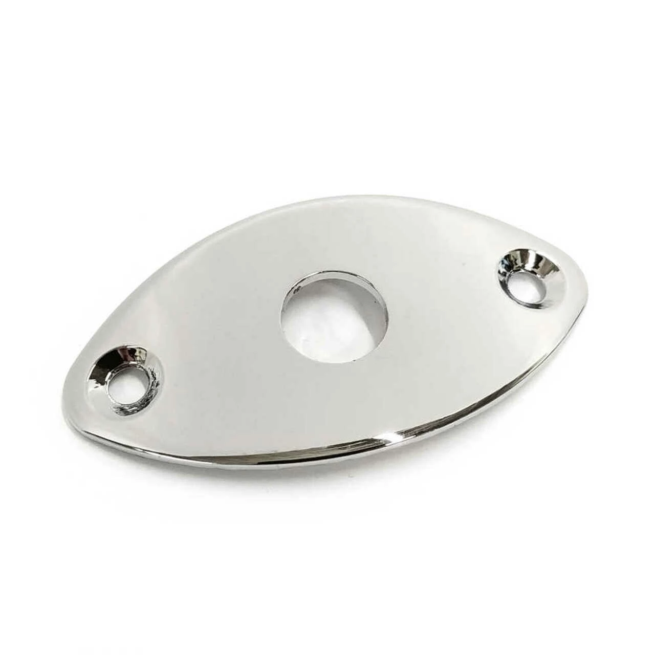 Football style jack plate.ย Sized for standard 3/8″ jacks (like Switchcraft), but will also work with smaller import style jacks.