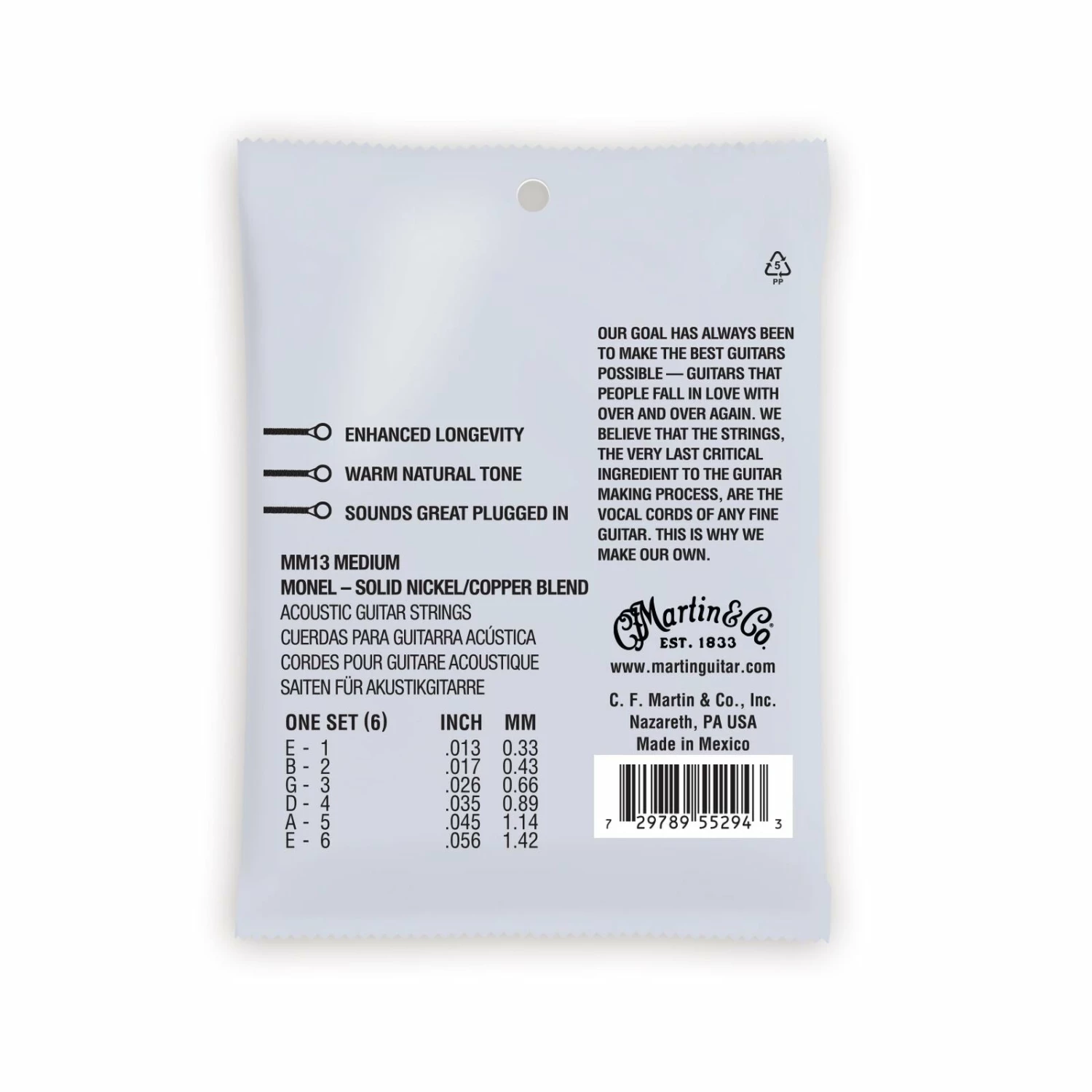 | Extra Light 12-String | .010/.010 | .013/.013 | .023/.010 | .029/.012 | .038/.018 | .047/.027 | 255.5 | MM1012 |