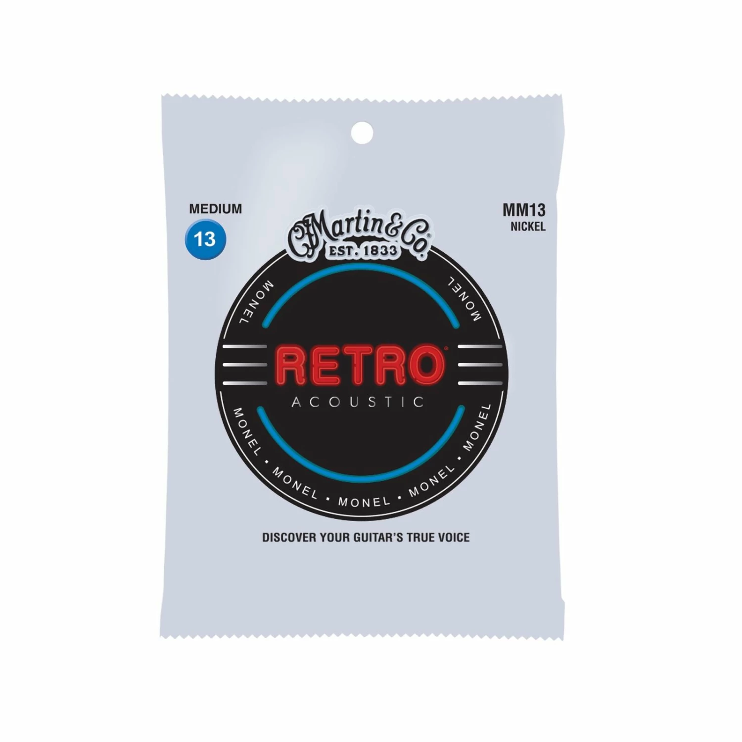 Martin Retro® strings are the real deal. Not an imitation. With Martin Retro® strings, you get one tough set that offers true, consistent tone and sounds like nothing else on the market. Martin’s solid nickel/copper alloy blend provides a reduced pick attack that allows the guitar’s tonewoods to be heard, not overshadowed. Martin’s proprietary Monel wrap wire is naturally corrosion resistant, so you can play them for a long time with nothing to get in the way of your music. Discover your guitar’s true voice. Retro® strings offer enhanced longevity with warm natural tone, and they sound great plugged in.