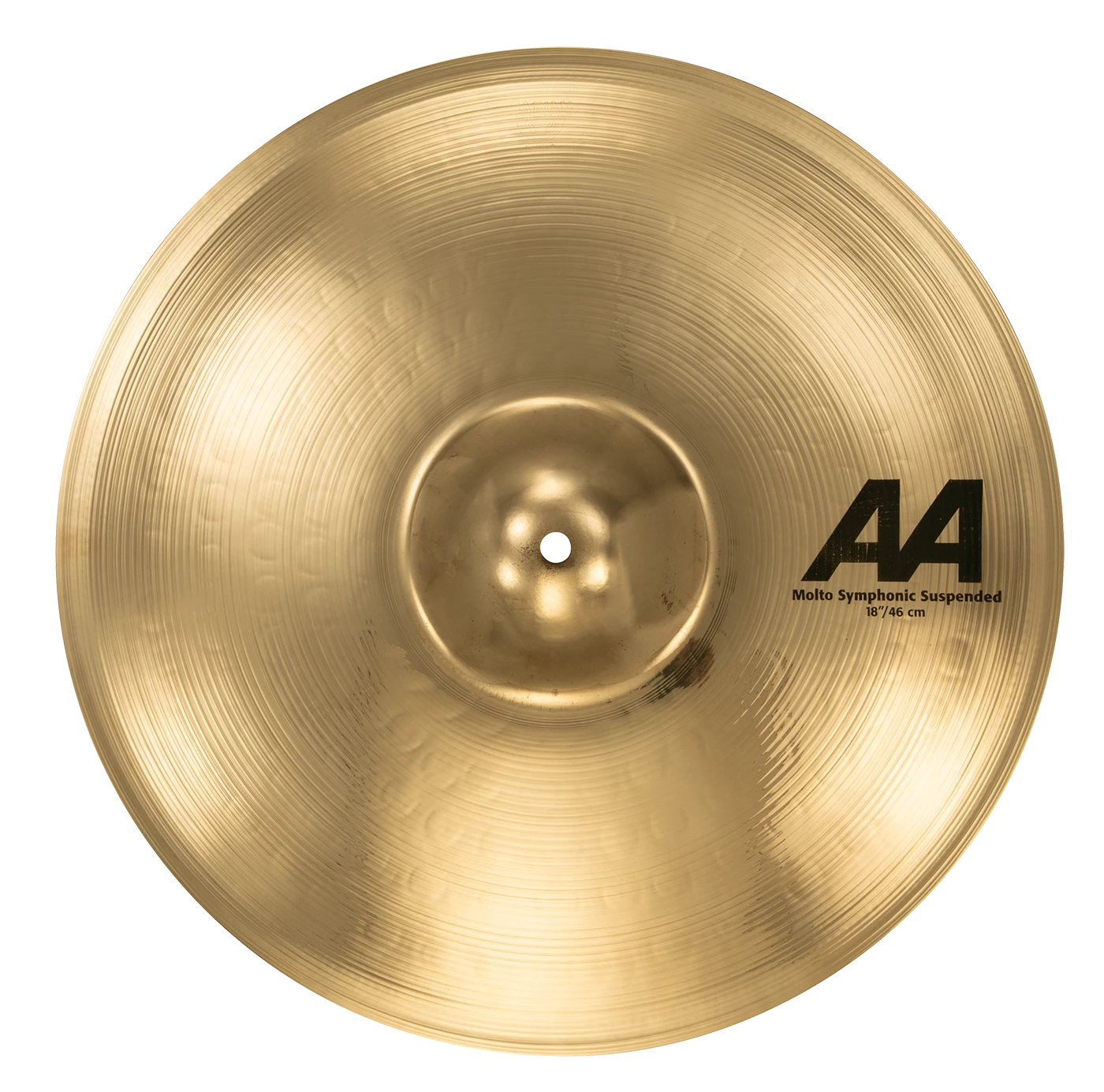 SABIAN 18โ AA Molto Suspended Cymbals are crafted from SABIAN B20 bronze and are a popular choice with band and orchestral programs. They are typically darker than AA Suspended Cymbals. They also have a flanged edge that aids in controlling sustain. The 18″ AA Molto Suspended Cymbal is ideal as a general-use model as it sounds great at a wide variety of dynamic levels: they can be played relatively loud while remaining sensitive enough to be played at softer dynamic levels. They are ideal when bright tone with even response at all dynamic levels is desired. As a series, AA Molto suspended cymbals have a moderate response time and take slightly longer for sound to blossom than AAX, HH, HHX and Artisan cymbals. The main difference between a suspended cymbal and a crash cymbal is the longer sustain in a suspended cymbal. Therefore, 15″ through 18″ suspended cymbals are an economical choice because they have the versatility to also be used as crash cymbals.