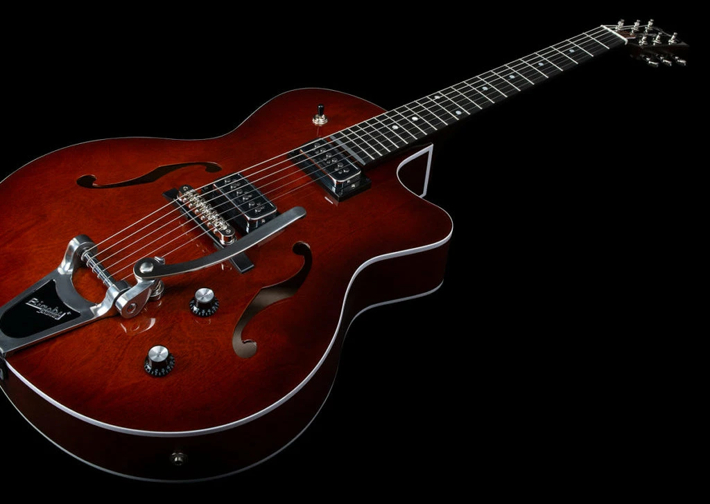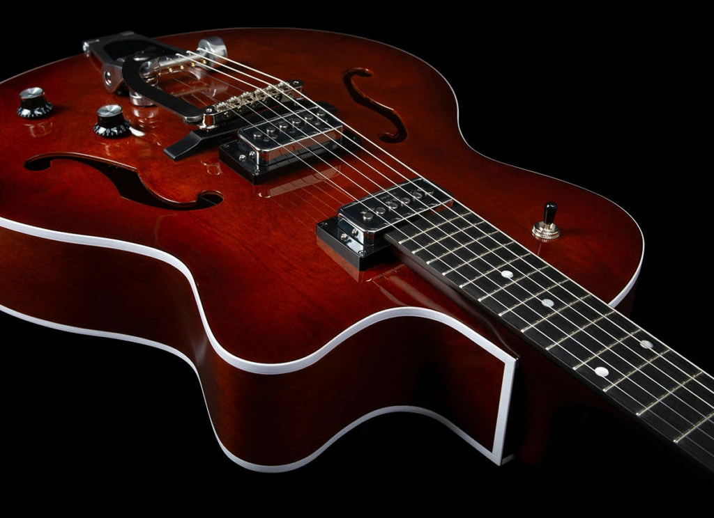 - Bridge and Tailpiece: T.O.M. with roller saddles and Bigsby Tremolo tailpiece