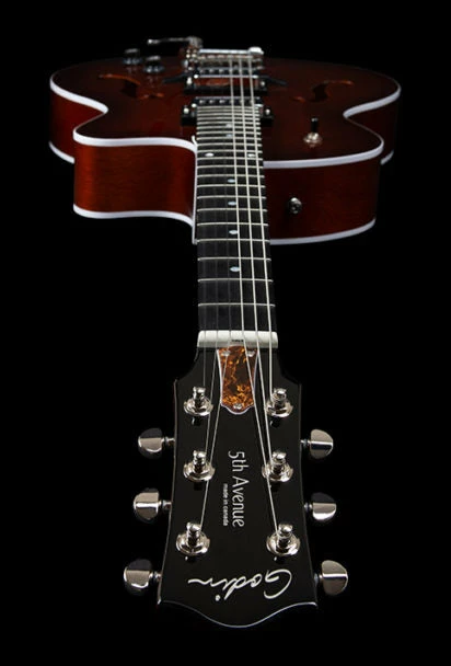 The Godin 047819 /ย 050970 is a 5th Avenue Uptown T-Armond Hollow Body 6 String RH Guitar Havana Burst.