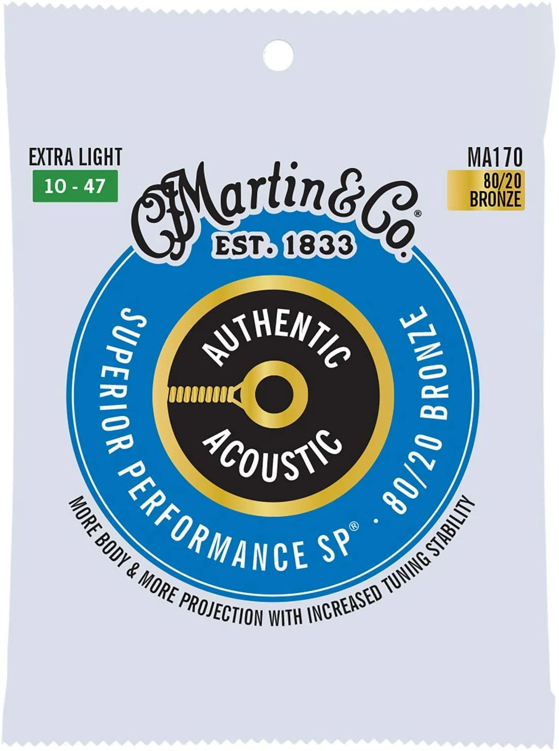 Martin® Authentic Acoustic® Superior Performance SP® strings feature higher tensile strength and tin-plated core wire on all six strings that enable a fuller and more balanced tone, quicker response and increased tuning stability. Our impeccable standards for acoustic guitar tone are embedded in our string design and precision manufacturing process. That’s why we make our own.
