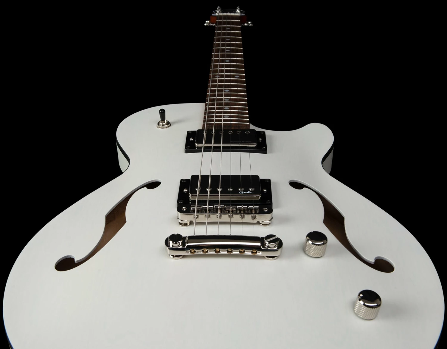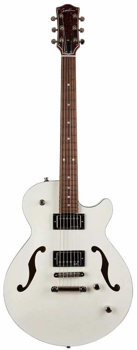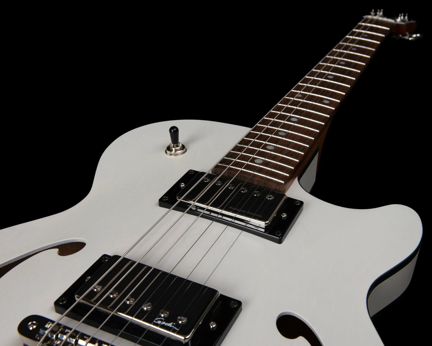 Godin 050222ย is a Montreal Premiere HT 6 String RH Hollowbody Guitar in Trans White