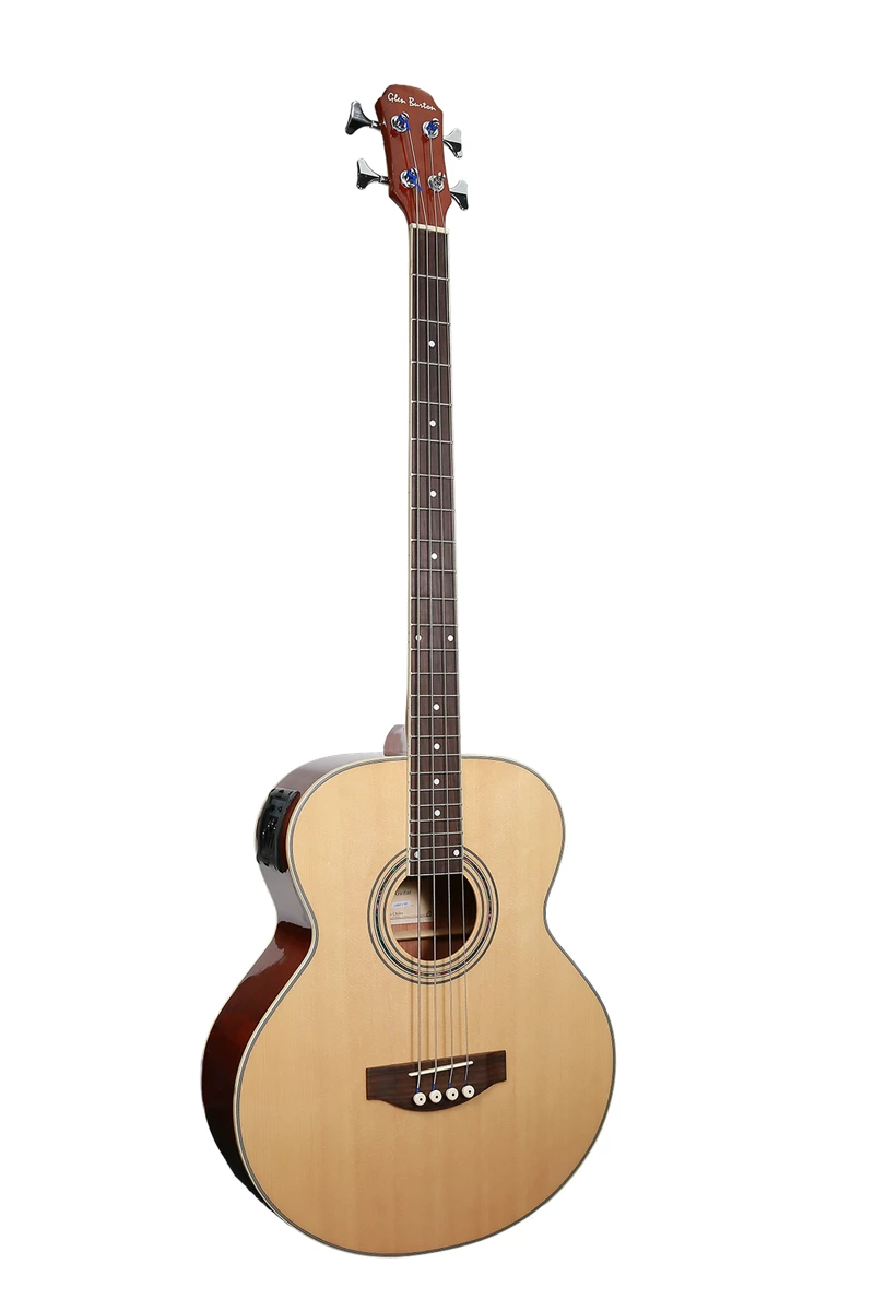 The De Rosa Acoustic-Electric 4 String Bass Guitar features high quality materials such as Sapele, Mahogany, and Rosewood. ย This guitar has great playability with its smooth mahogany neck and cutaway shaped body to reach the higher frets! It is the perfect guitar for any bassist who needs to add an acoustic to their collection or for live performances in front of audiences. ย It can be played bold and loud with its deep acoustic body or easily plugged in to an amplifier and adjusted for the perfect sound with its active 4 band onboard EQ and pickup!ย