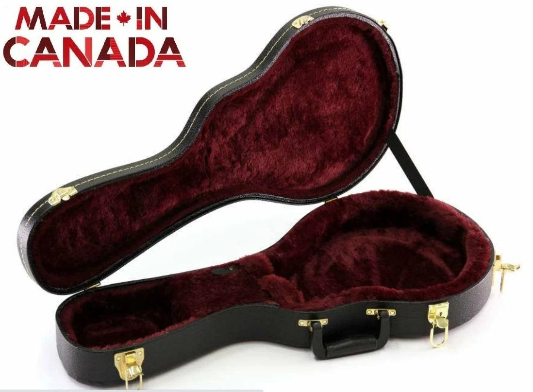 These superior F-style mandolin cases are built in Canada to be road-tough and refined with durable vinyl covering, 5-ply cross-laminate wood construction, plush interior lining and heavy-duty hardware.ย