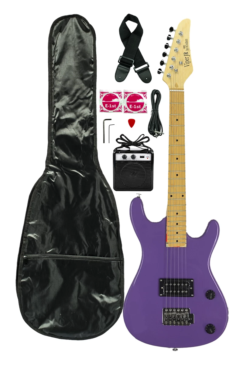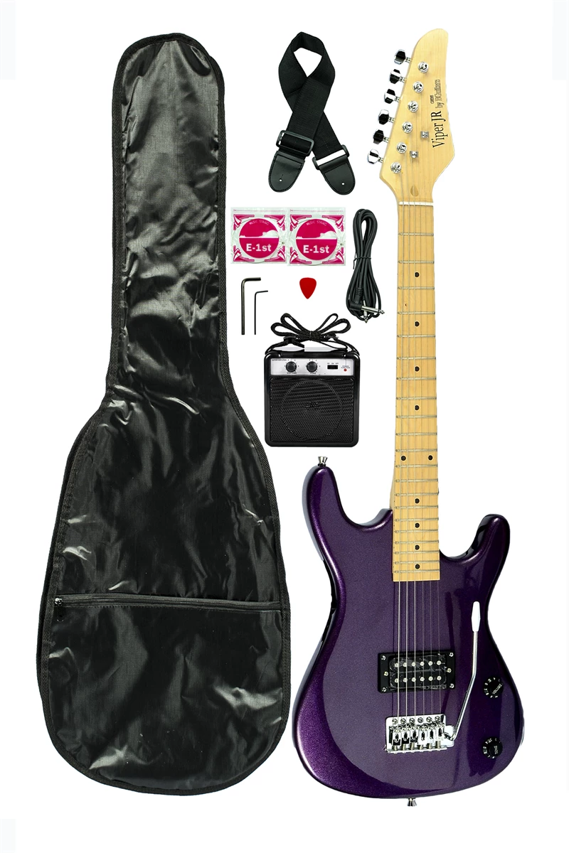 The Viper Jr Electric Guitar Combo Pack is a great way to introduce kids to the electric guitar. Everything your kid needs to start rockin’and rollin’ is in this package. Perfect for smaller people, a real ¾ scale electric guitar made out of quality components is a lot of fun to play. A battery powered 3 watt amplifier allows your little rocker to play virtually anywhere. The Viper Jr Combo is quality, value, and FUN!