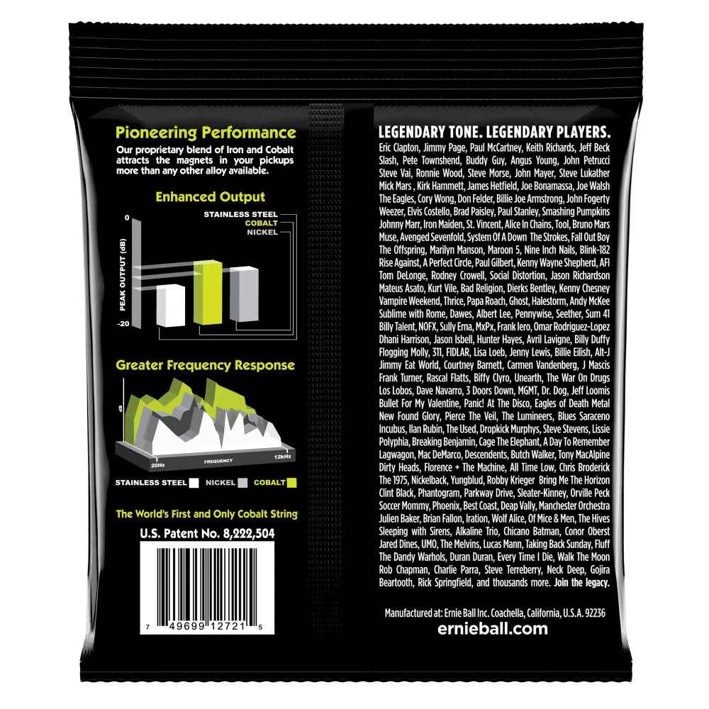 Ernie Ball Cobalt Slinky Electric Guitar Strings provide an extended dynamic range, incredible harmonic response, increased low end, and crisp, clear highs. Cobalt provides a stronger magnetic relationship between pickups and strings than any other alloy previously available. Cobalt Slinky guitar strings are also soft and silky to the touch, making string bending a breeze. Gauges .010, .013, .017, .026, .036, .046
