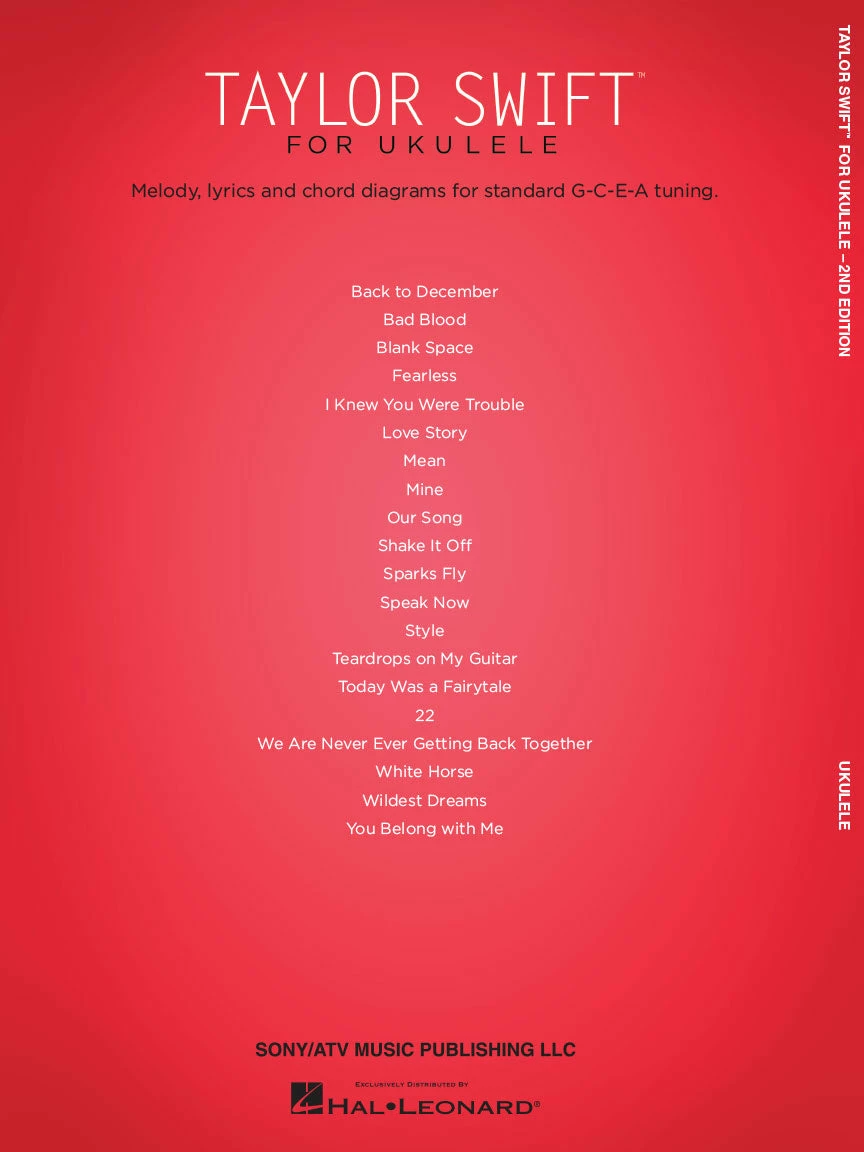 (Ukulele). This second edition has been updated to include selections through 1989 for a total of 20 Swift hits, featuring: Back to December * Bad Blood * Blank Space * I Knew You Were Trouble * Love Story * Mean * Mine * Shake It Off * Style * Teardrops on My Guitar * Today Was a Fairytale * Wildest Dreams * You Belong with Me * and more.