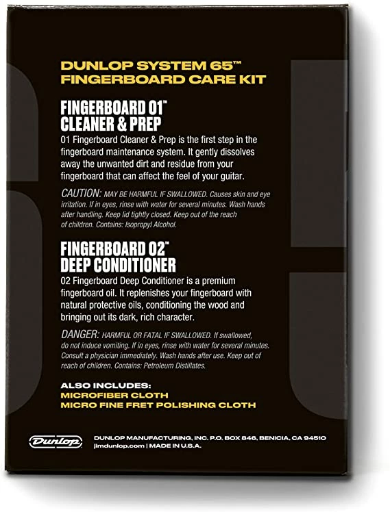 Includes Formula 01 4oz Fingerboard Cleaner & Prep Solution and Formula 02 4ozFingerboard Deep Conditioner.