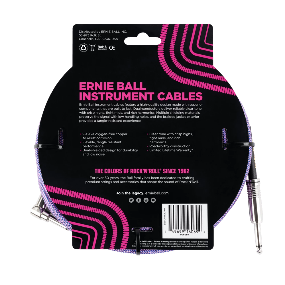 Hot Sale ๐ ERNIE BALL 25′ BRAIDED STRAIGHT / ANGLE INSTRUMENT CABLE – PURPLE P06069 Instrument Cables โ๏ธ